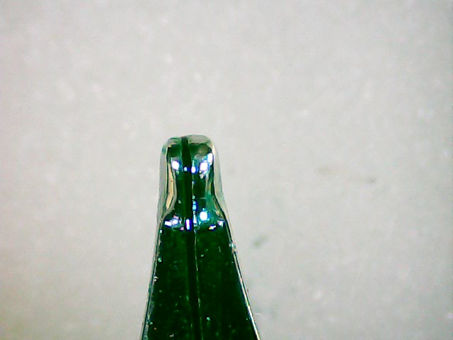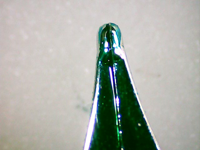 Osservando frontalmente il pennino (cosa impossibile al mio microscopio) le due teste dei rebbi sono di dimensioni diverse.