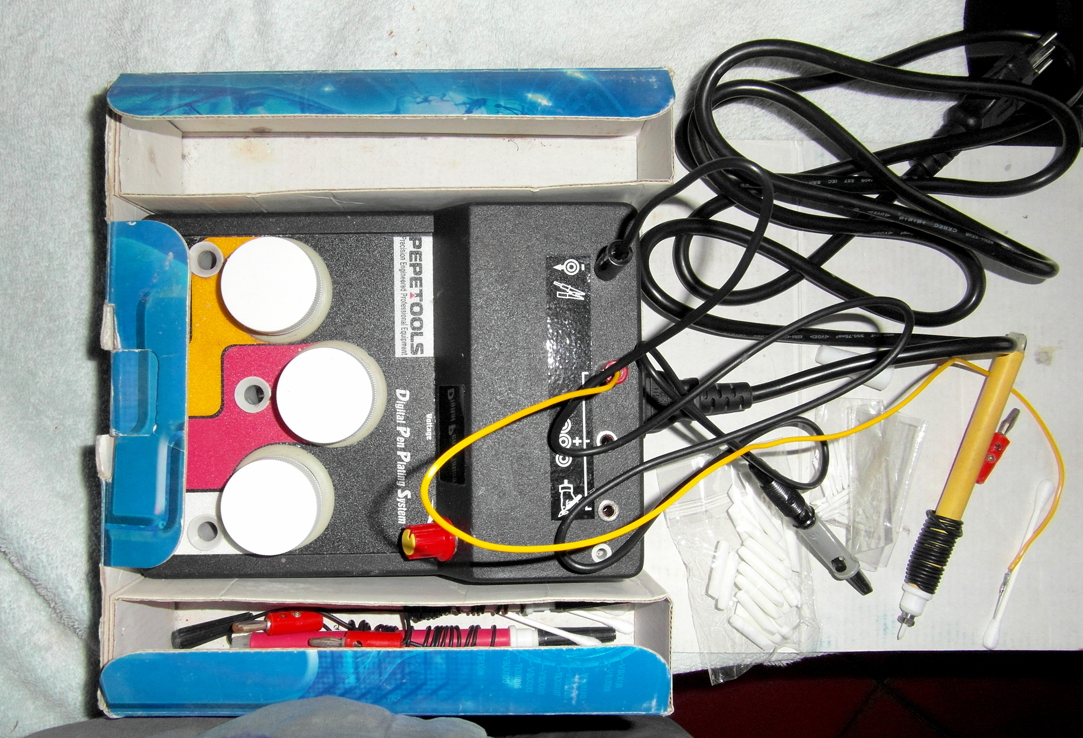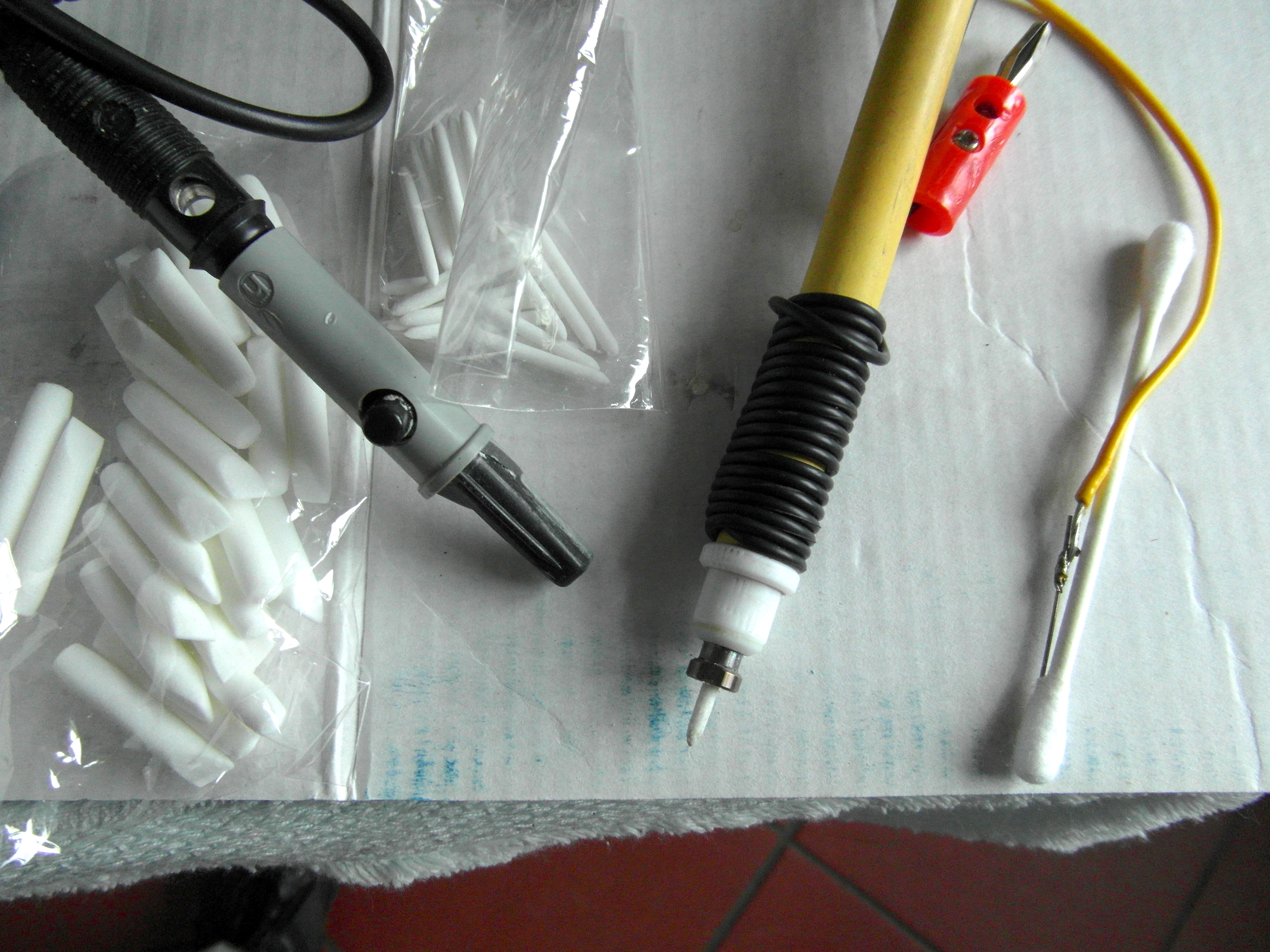 Nelle foto allegate l'attrezzatura galvanica in mio possesso, dove si possono vedere i "pennarelli" in dotazione con le punte di ricambio di due misure, che mi sembrano del tutto analoghe a quelle mostrate da Malina, e l'alternativa "cotton fioc" che uso con soddisfazione da un pò.
