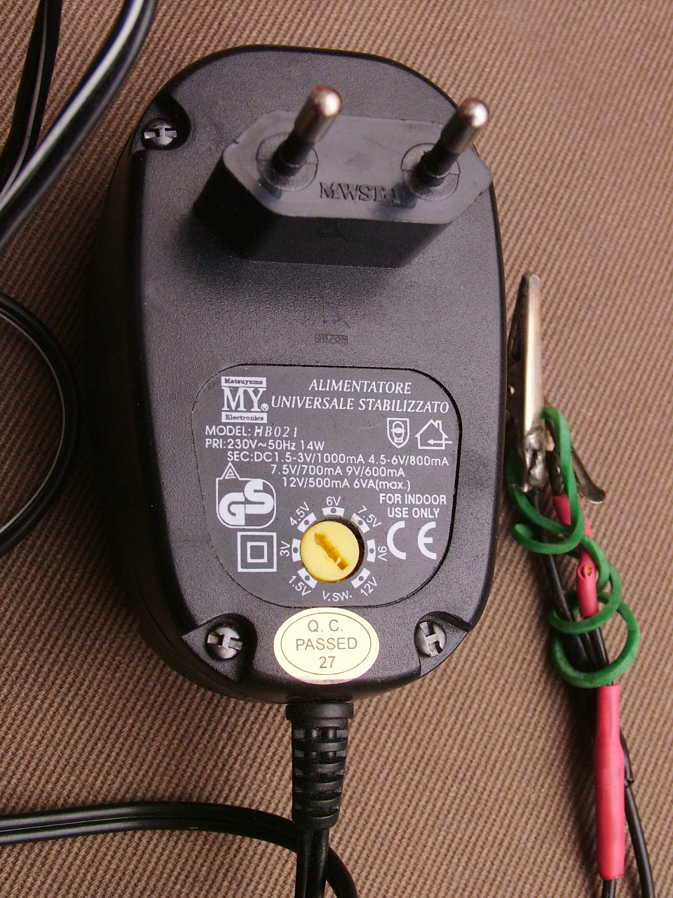 N.B. l'alimentatore deve essere STABILIZZATO, in pratica con il positivo ed il negativo in uscita