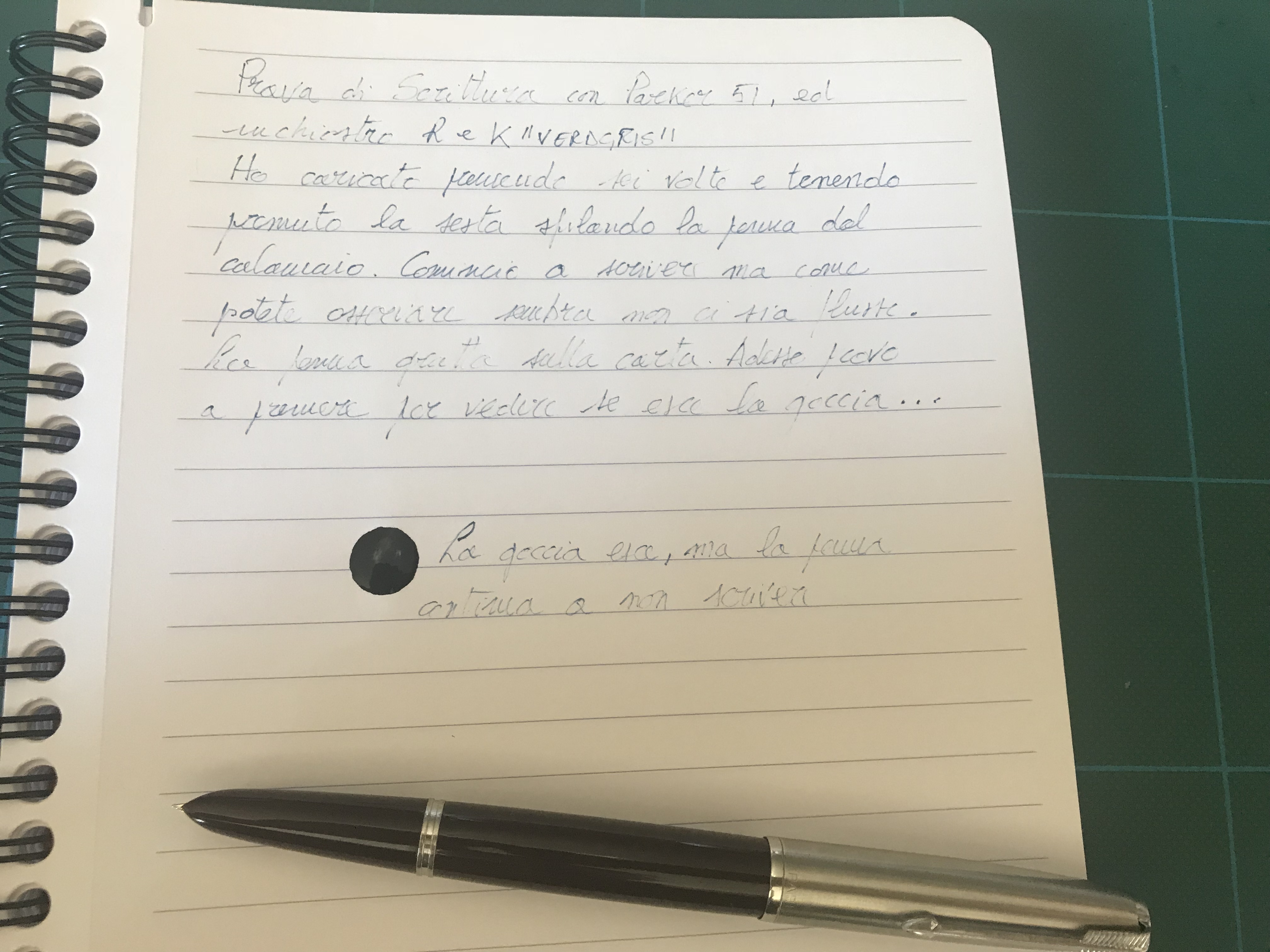 Allego prova di scrittura e foto del pennino.La penna scrive nel modo che vedete, se premo la pressure bar esce inchiostro, vedi goccia.