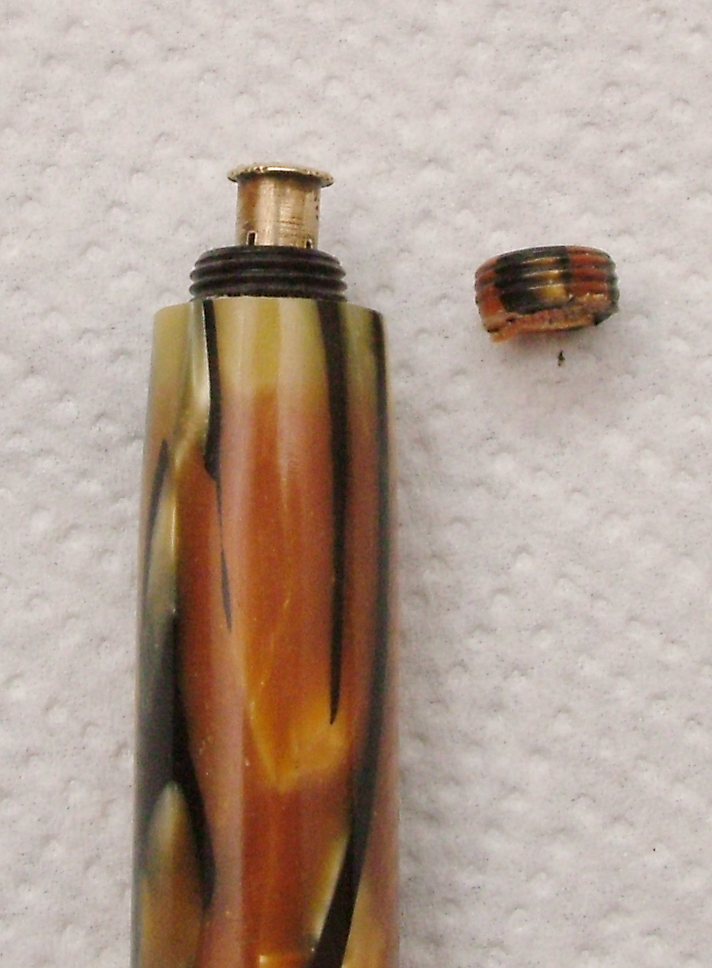 Purtroppo ho dovuto sostituire anche la parte filettata sul fusto, la sua era spanata, come stringevo girava a vuoto.Ho tagliato l'originale e l'ho sostituito con un altro con lo stesso filetto.