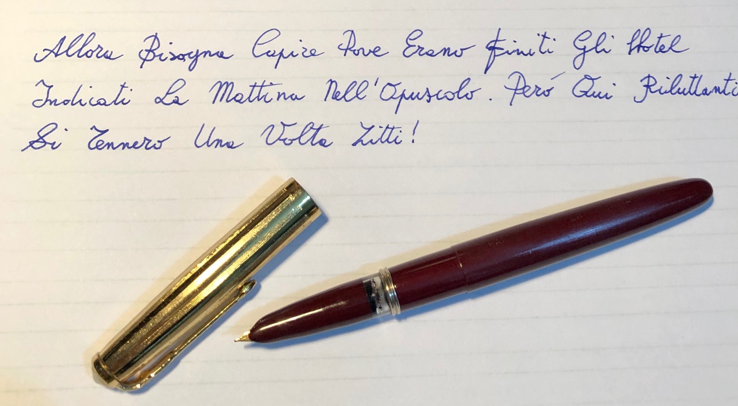 Quella in foto è una banalissima penna pubblicitaria che scopiazza allegramente una Parker 51 e riportava una scritta relativa ad una Farmacia di Roma (abrasa con l'uso di carta vetrata fine)