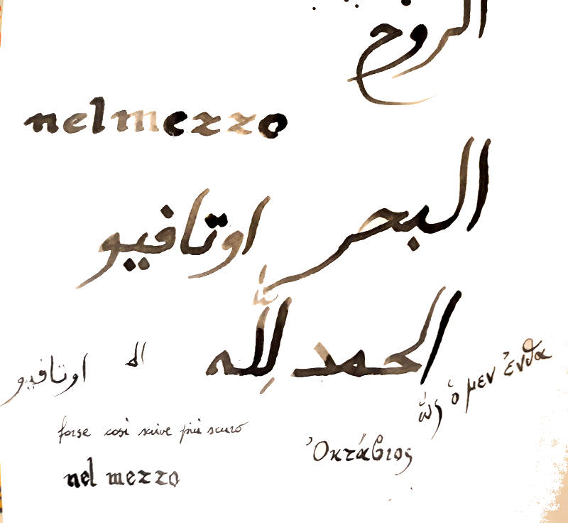 Oggi era pronto il mio secondo inchiostro (il primo era di melagrana); ho fatto un po' a occhio: ho messo in infusione in un l. d'acqua distillata un paio d'etti di roba mista (melagrana intera a pezzi, noci di galla di quercia del tipo spugnoso, alcune brattee di nocciolo riccio (https://www.giardinaggio.it/giardino/al ... orylus.asp); dopo una settimana ho bollito fino a ridurre ad 1/4 di l., ho aggiunto a caldo due cucchiai di solfato ferroso e 1 cucchiaino di gomma arabica, ho lasciato riposare due giorni, ho ribollito per 5' e ho filtrato. E' un po' lento ad asciugarsi. Questo è il risultato: