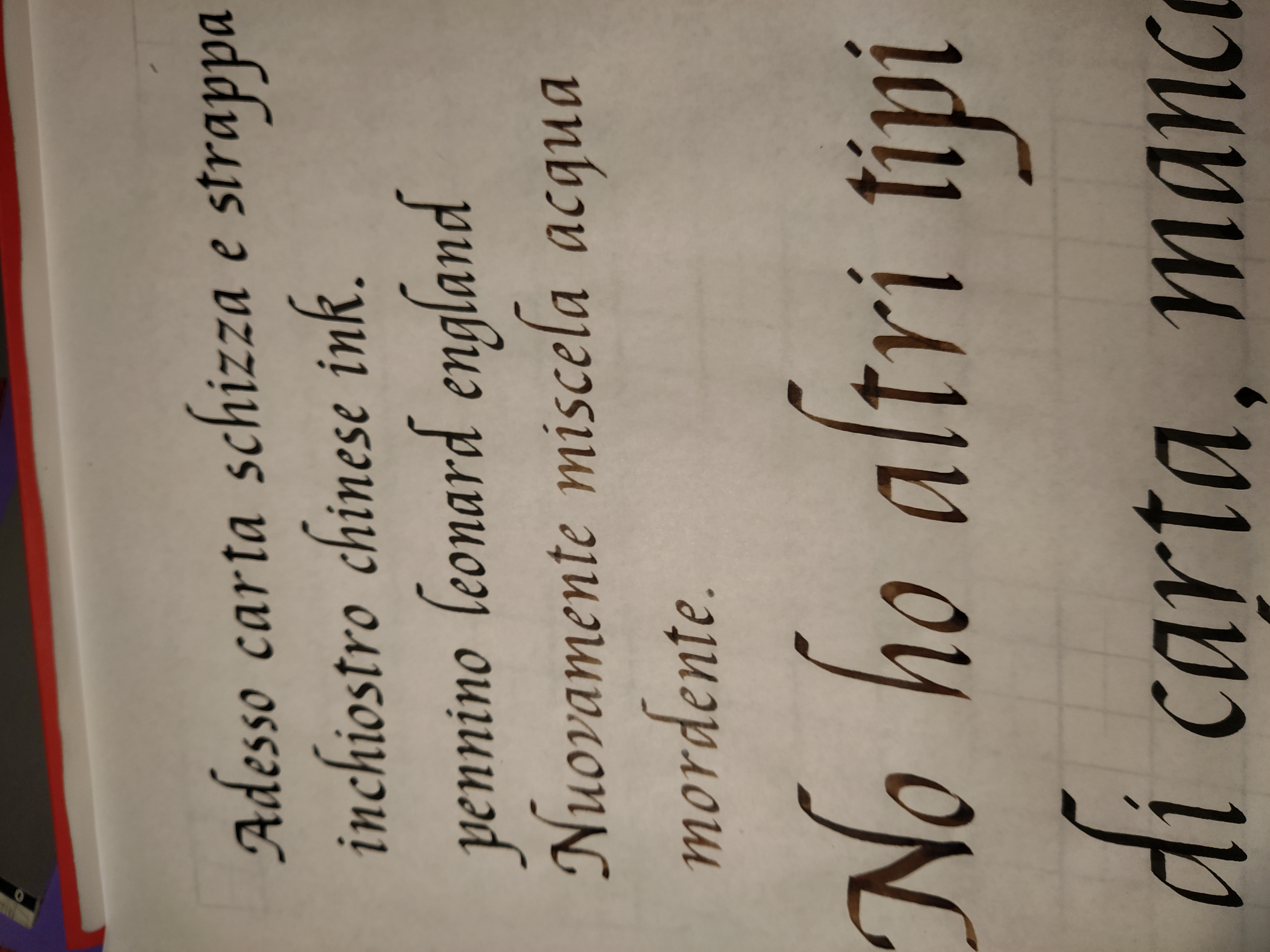 In ogni caso stai scrivendo bene! Continua.... quando sarà possibile potrai provare qualche altro tipo di carta (o inchiostro o pennino) per vedere se c'è differenza. L'importante è che tu continui....vai benissimo! :thumbup: