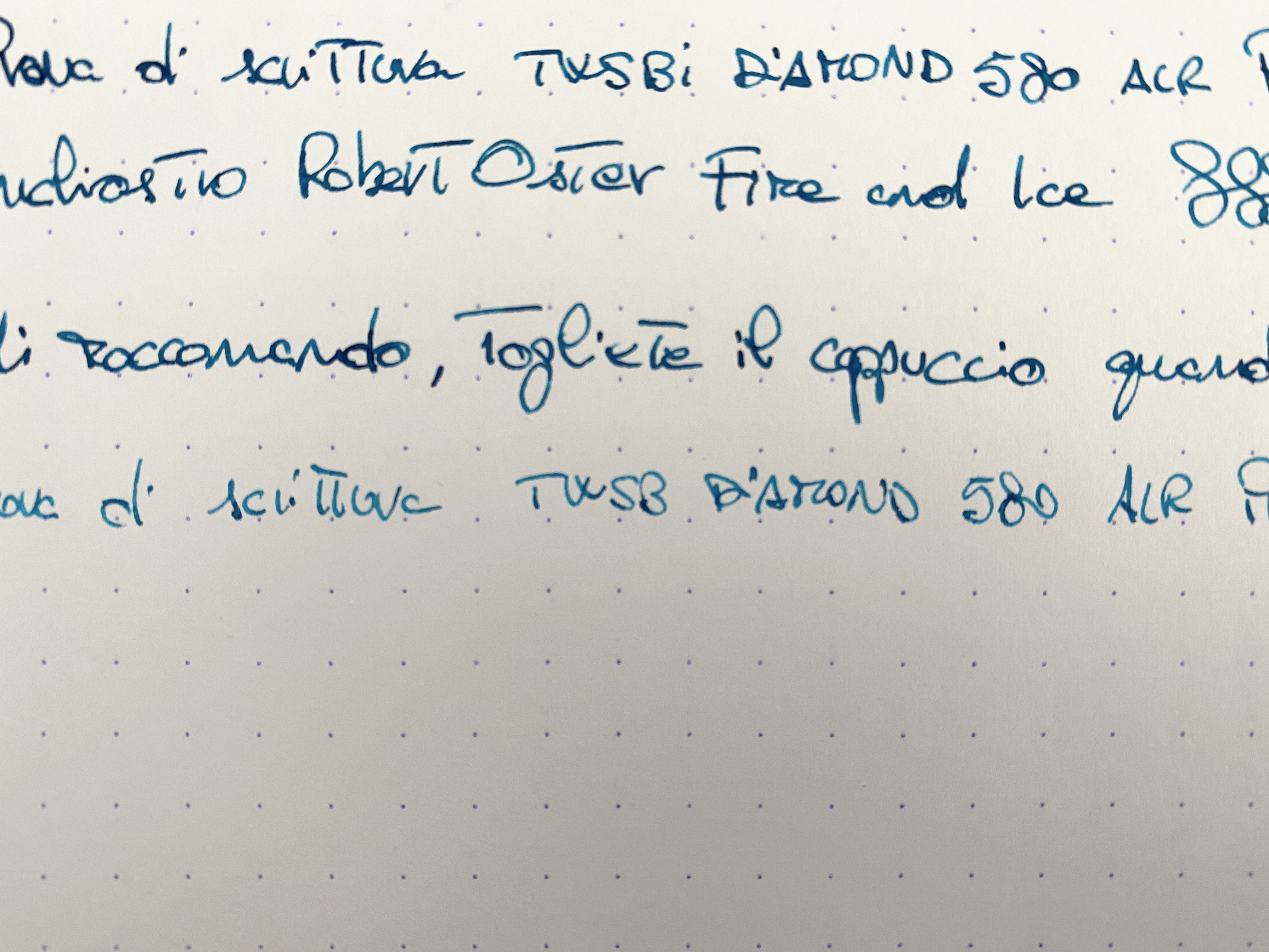 Ora però guardate questo. L’ultima riga l’ho scritta ora. Stesso inchiostro, stesso pennino, stessa carta. La riga sopra è stata scritta il giorno in cui ho pubblicato la recensione. Sembra un altro inchiostro. Boh