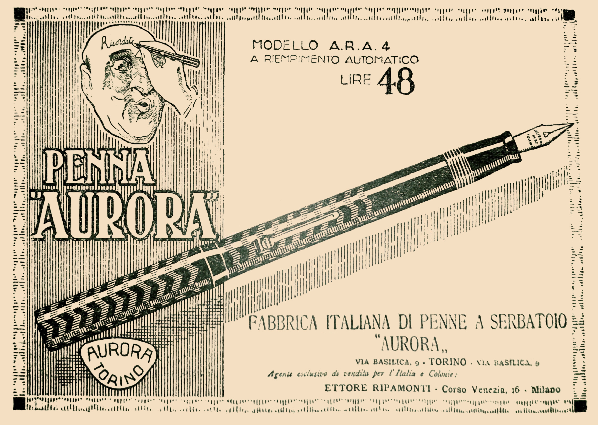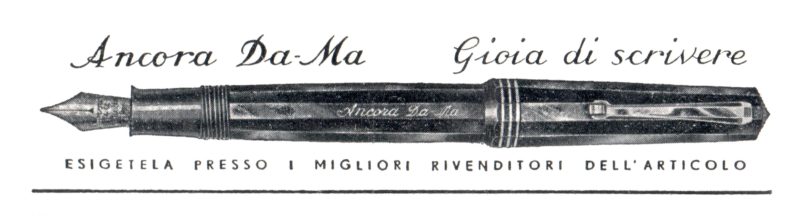 Ma per Ancora, beh nel 1937, dopo la rivoluzione delle penne trasparenti a pistone, sfiatatoio o siringa, certamente si vergognavano di mostrare "ancòra" la levetta, e quindi, dato anche il poco spazio a disposizione per l'inserzione pubblicitaria, mostravano penna chiusa e pennino e clip allineati alla marca...
