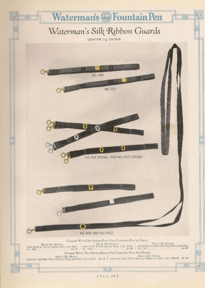 Dunque, potendoci attaccare sia nastri, sia catene, la presenza del solo anellino sul cappuccio non identifica una penna come dedicata al gentil sesso, corretto? Questa considerazione mi porta a chiedere: anche solo a livello teorico, sarebbe stato possibile vedere le penne più grandi adornate con un nastro e quelle più piccole con una catenina? All'atto pratico, invece, c'erano preferenze su cosa aggiungere in base alle dimensioni delle penne?
