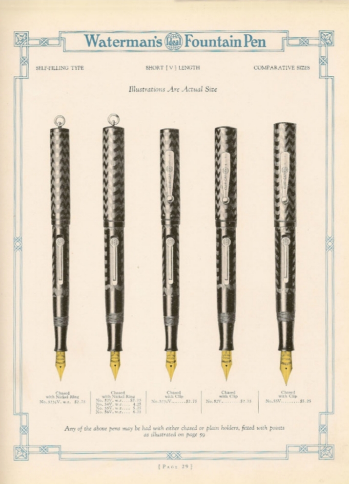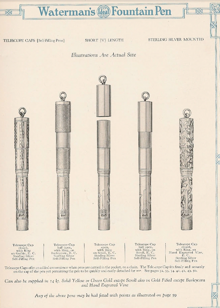 Sulla parte inferiore della terza stampa, leggo: "Any of the above pens may be had with either chased or plain holders, fitted with points as illustrated on page 59".
