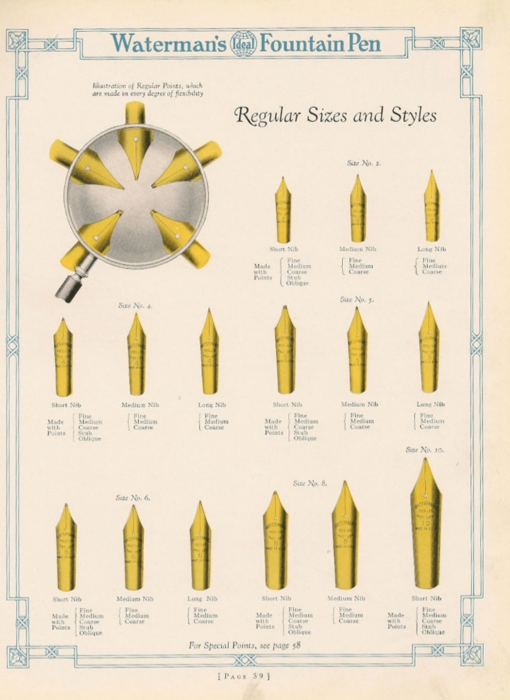 Sulla parte inferiore della seconda stampa, leggo: "Any of the above pens may be had fitted with points as illustrated on page 59".