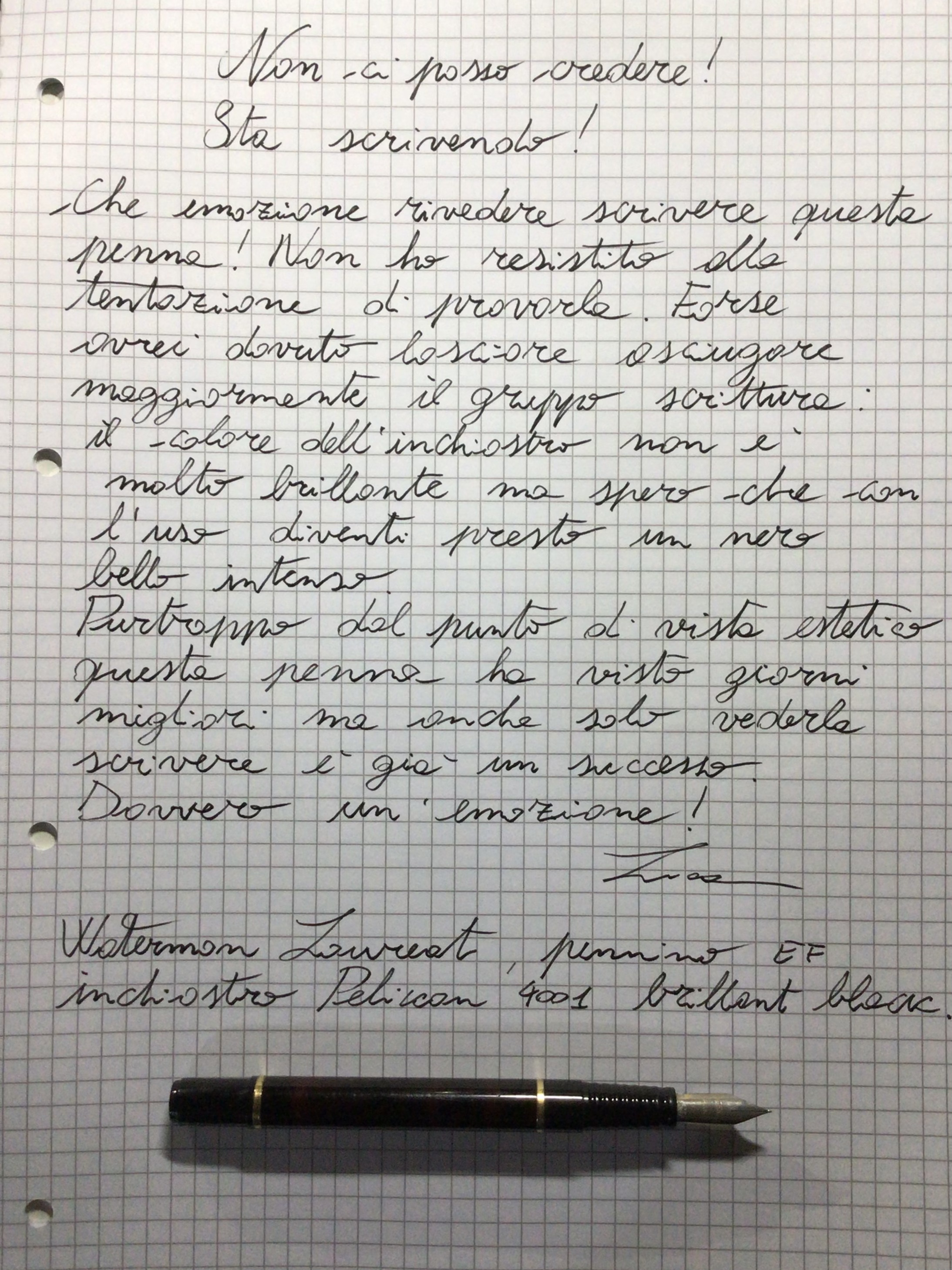 Sono davvero soddisfatto del tratto di questo pennino ma più che altro sono davvero felice di aver potuto riscrivere con la prima stilografica che abbia mai usato in vita mia: la stilografica che usava mio padre quando ero un bimbo.