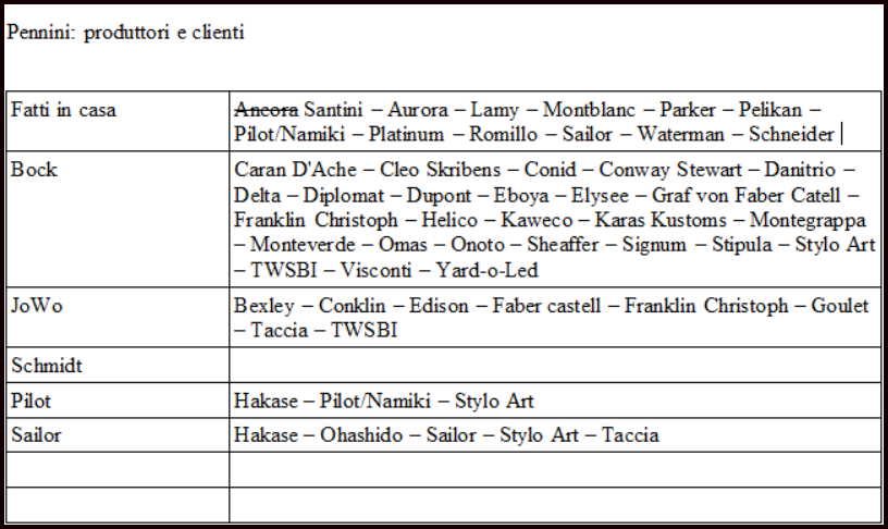 E' impressionante questa tabella, credevo che la maggior parte delle aziende si producesse il pennino per proprio conto..è invece è tutt'altra realtà!