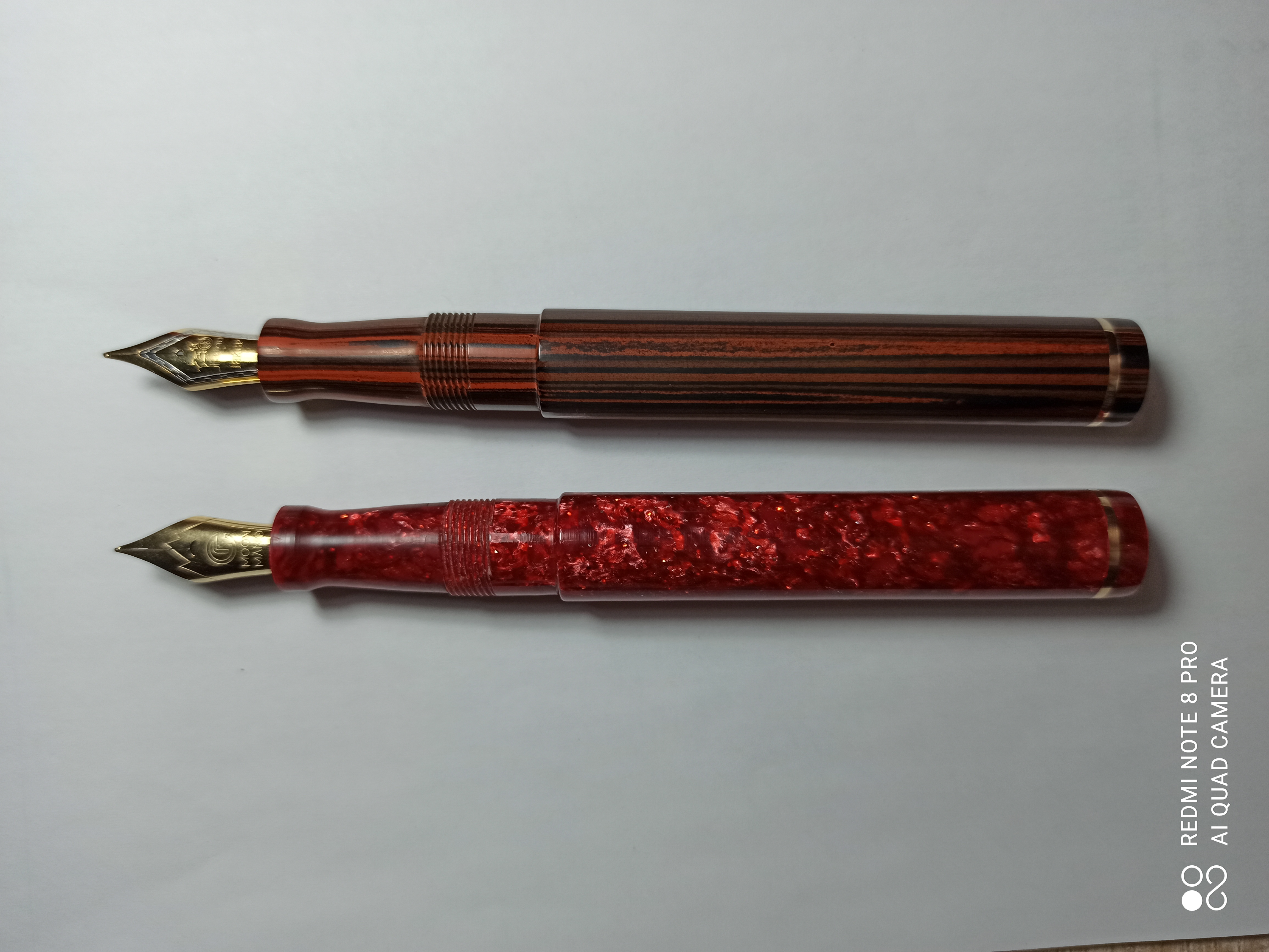 Indipendentemente dalla difficoltà tecnica accresciuta dal dotare la penna di caricamento a mezzaluna, la qualità del lavoro di tornio e delle finiture é superlativa. Complimenti vivissimi! I futuri possessori di queste penne avranno ragioni per esserne orgogliosi.giorgiogreco ha scritto: ↑domenica 28 febbraio 2021, 23:39 tutta tutta solo la clip che e tedesca anni 50 ed il pennino che e Visconti pero posso facilmente montare un qualsiasi waranted n.6 sono in fase di costruzione alcune che mostrero tra qualche settimana la duofold e una centenial
