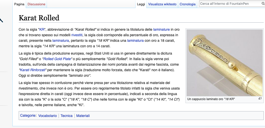 che NON sono quelli dell'oro massiccio (all'epoca 18 K oppure 18 C) ma quelli della più comune e assai meno preziosa laminatura 18 K.R.