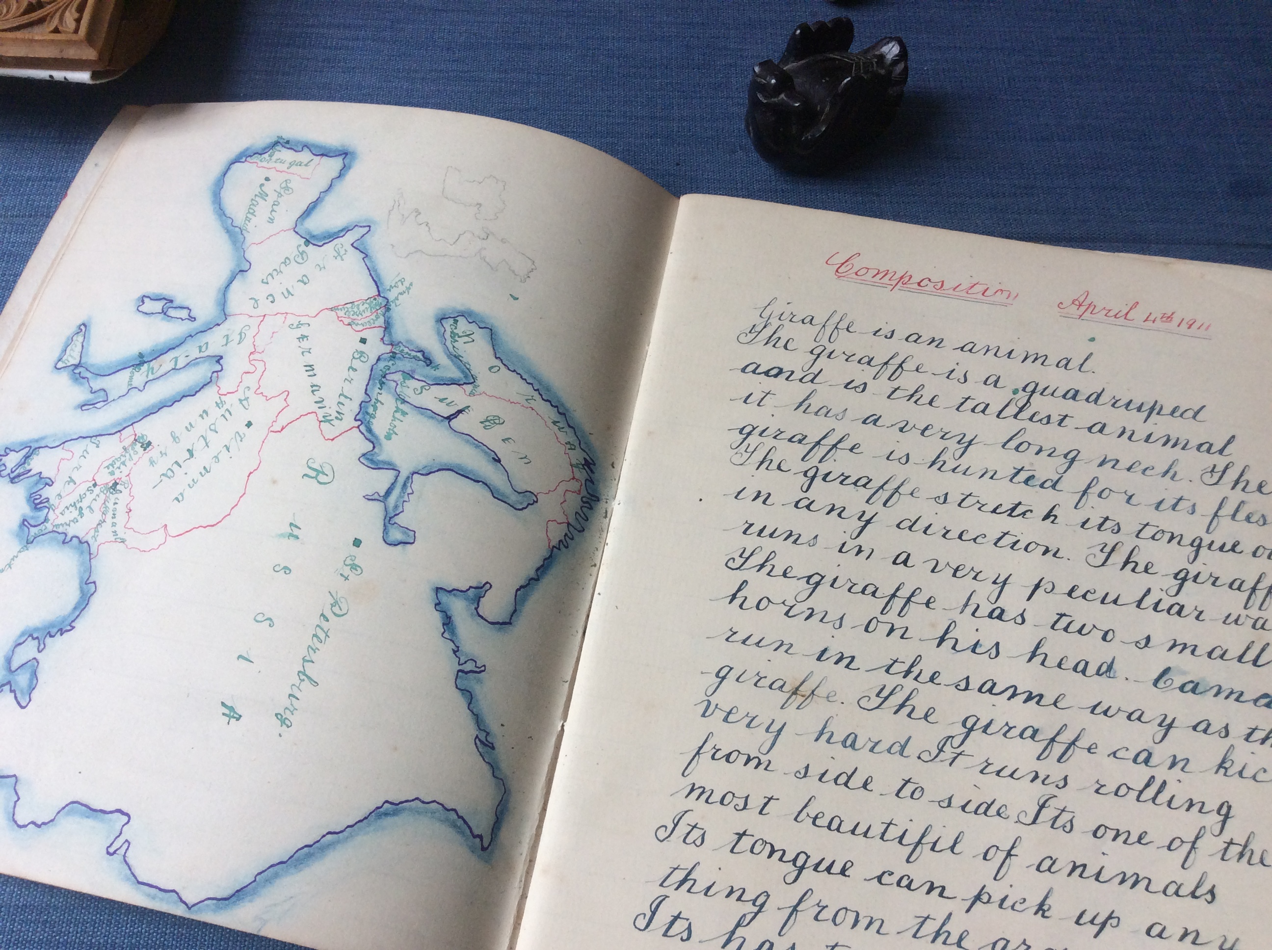 Ecco 2 pagine di un vecchio libro di scuola di mio nonno (nato nel 1900).