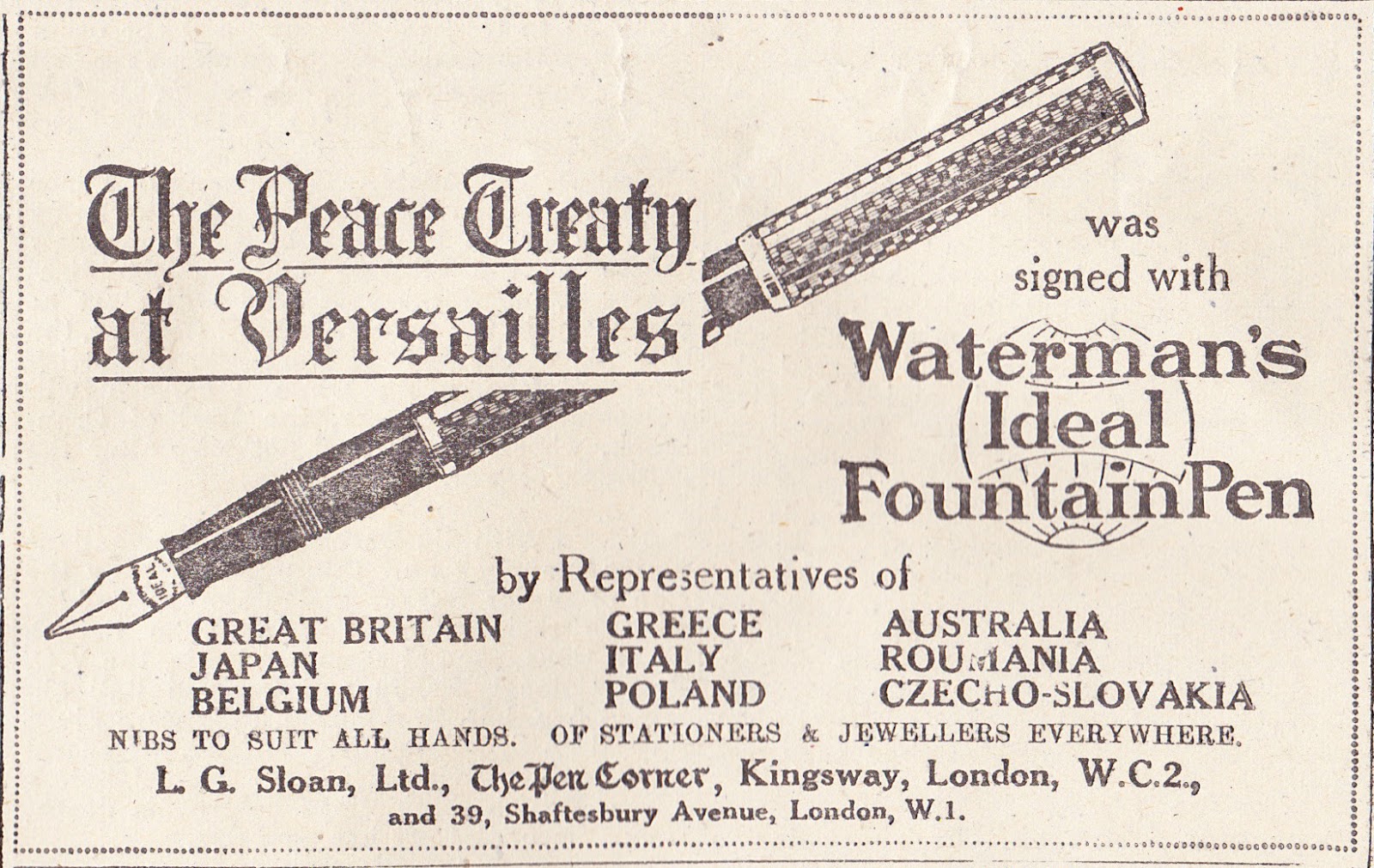 muristenes ha scritto: martedì 31 agosto 2021, 14:19 Sloan si levò pure la soddisfazione di una rivincita sulla Onoto: il trattato di Versailles venne firmato proprio con una Waterman :lol: