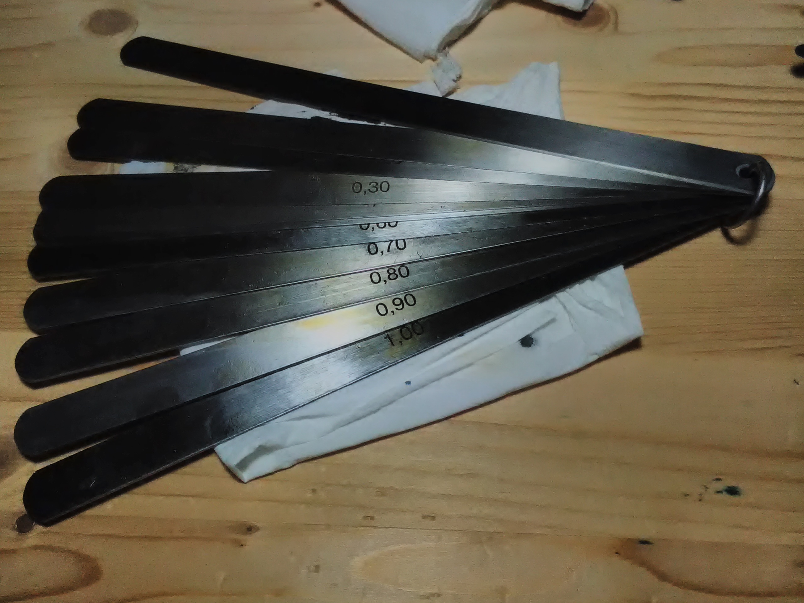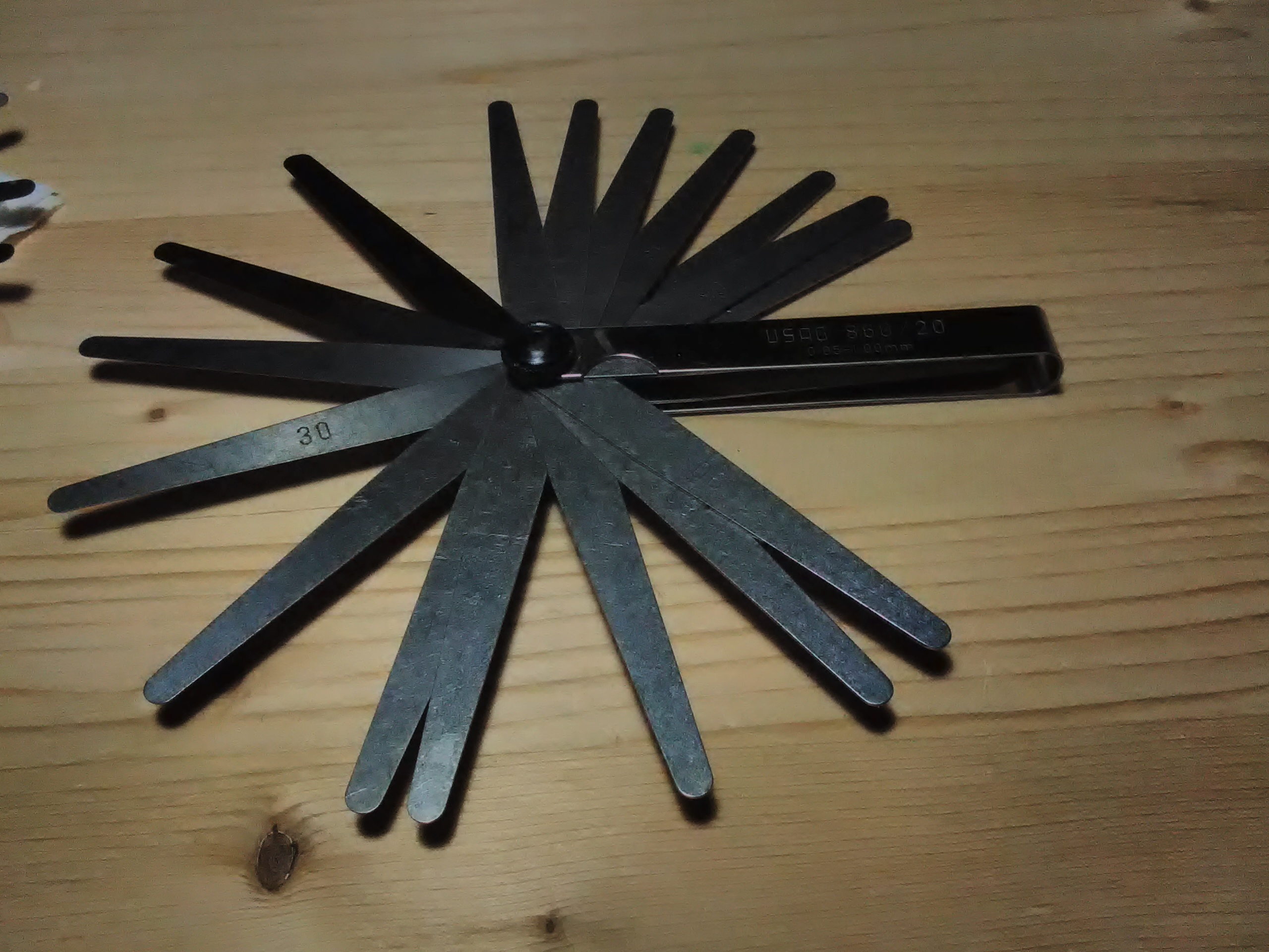 Consiglio di usare semplicemente l'unghia dell'indice. Può lasciare qualche residuo da togliere poi con una lametta. Questa non devi girarla a sinistra o a destra, lasciala filare dritta tra i rebbi. Con lo spessimetro si possono fare solo danni.