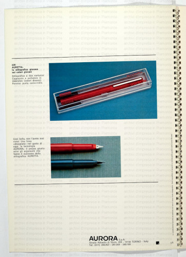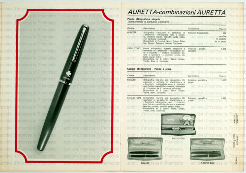 Viene determinato il 1965 come anno di presentazione della Auretta e viene ricordata la campagna pubblicitaria di quell’autunno, che, comprendendo anche la televisione, ha portato alla grande diffusione di questa penna.