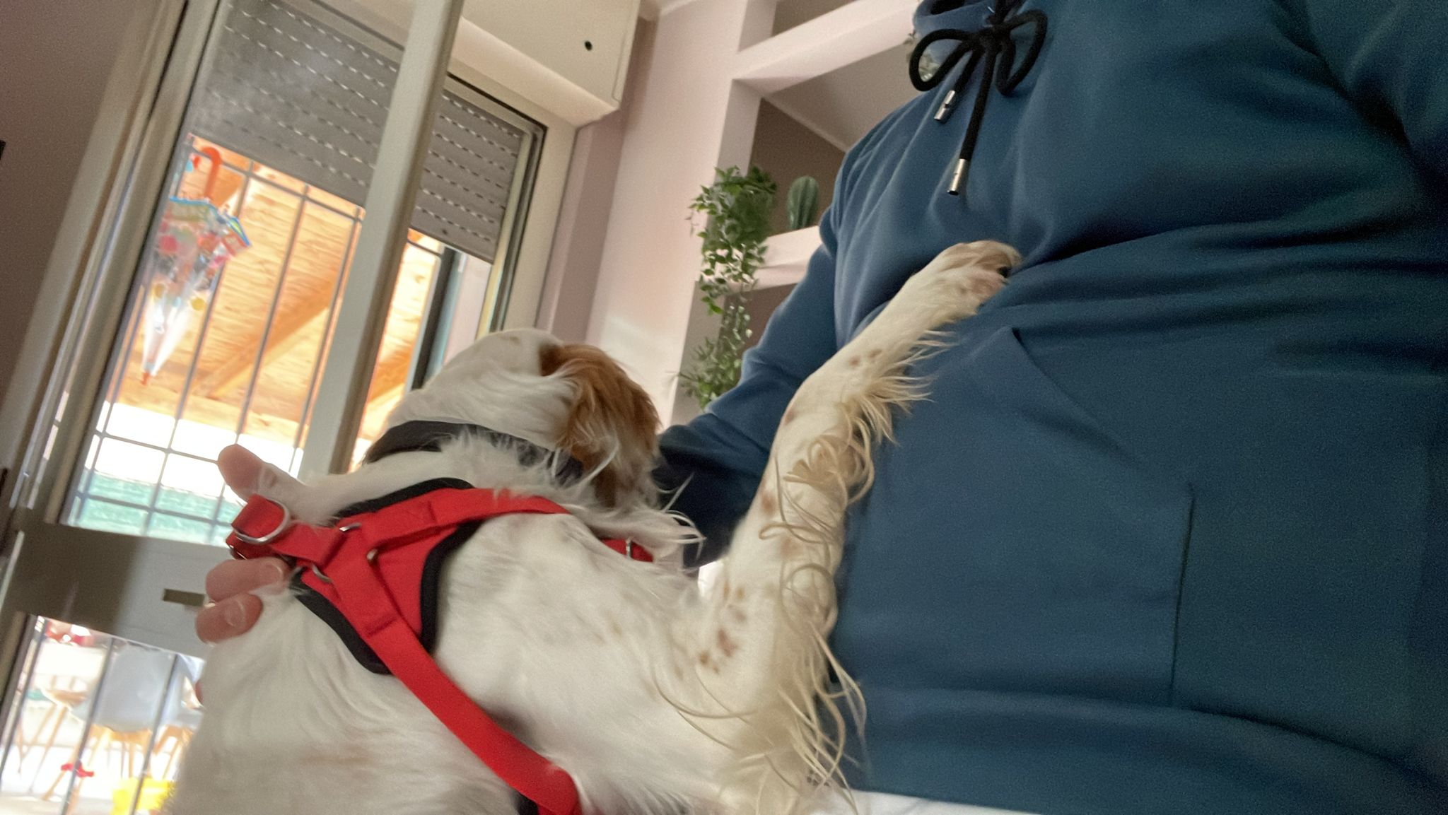 La cosa che mi ha più stupito di questo cucciolone è che corre, salta, rincorre i gatti, gioca coi bimbi, ma soprattutto cerca abbracci e carezze. Ne è dipendente, ti obbliga a tenerlo abbracciato. Tenerissimo.
