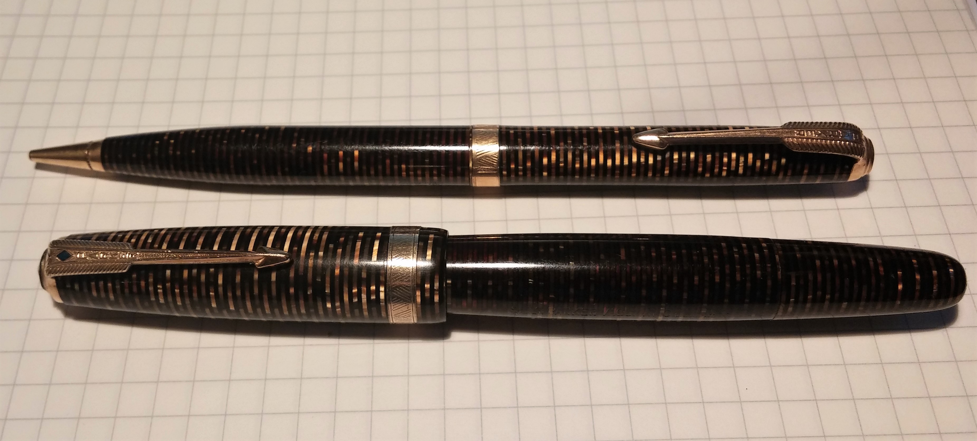 Non ho resistito ad una matita, che ho trovato a poco, e mi sono fatto la parure di Vacumatic: