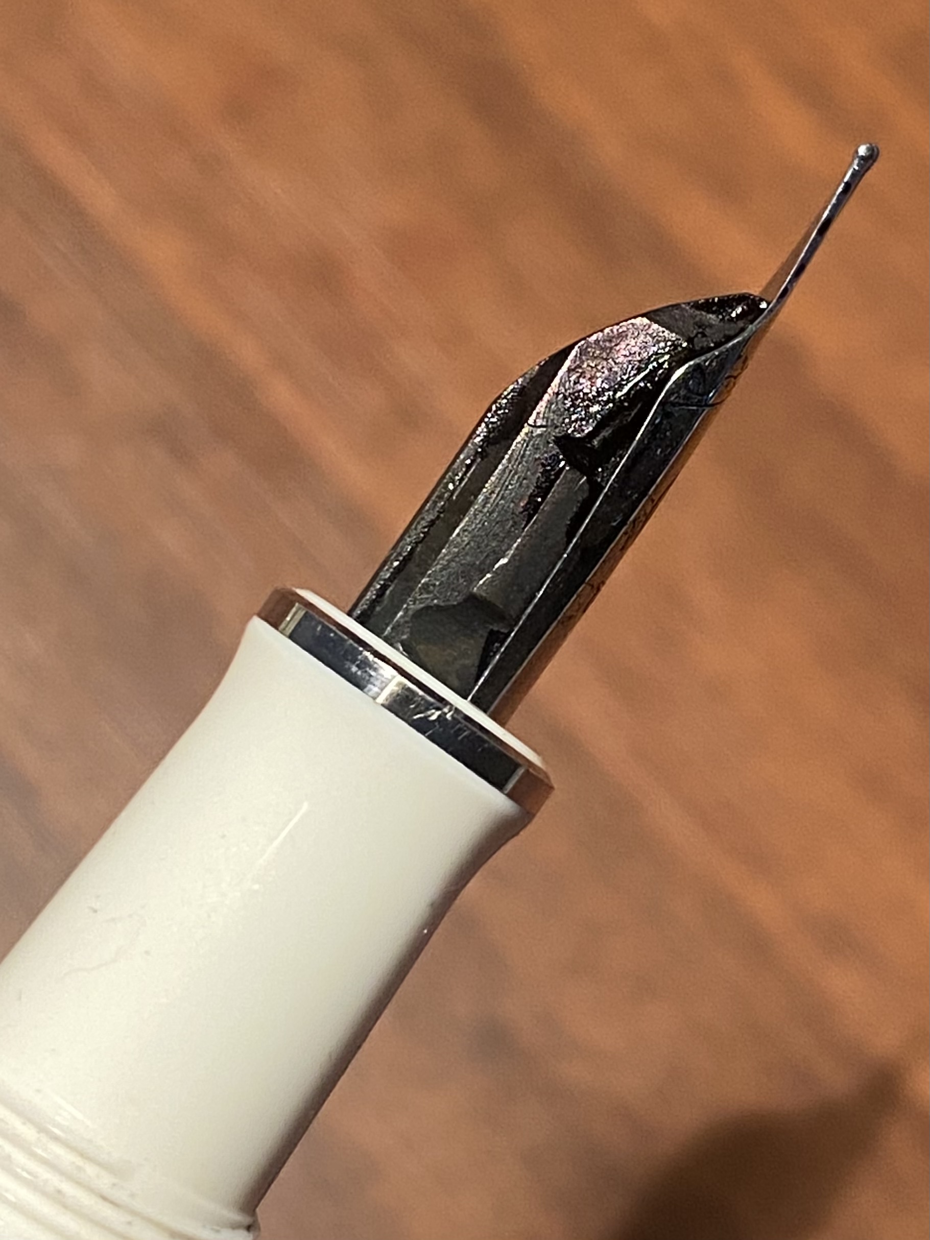 Ho tentato con un pennino flex di una Verbana (credo degli anni 50) ma in questo caso è troppo lungo e stretto, sporge troppo dall'alimentatore e non sta ben fermo.