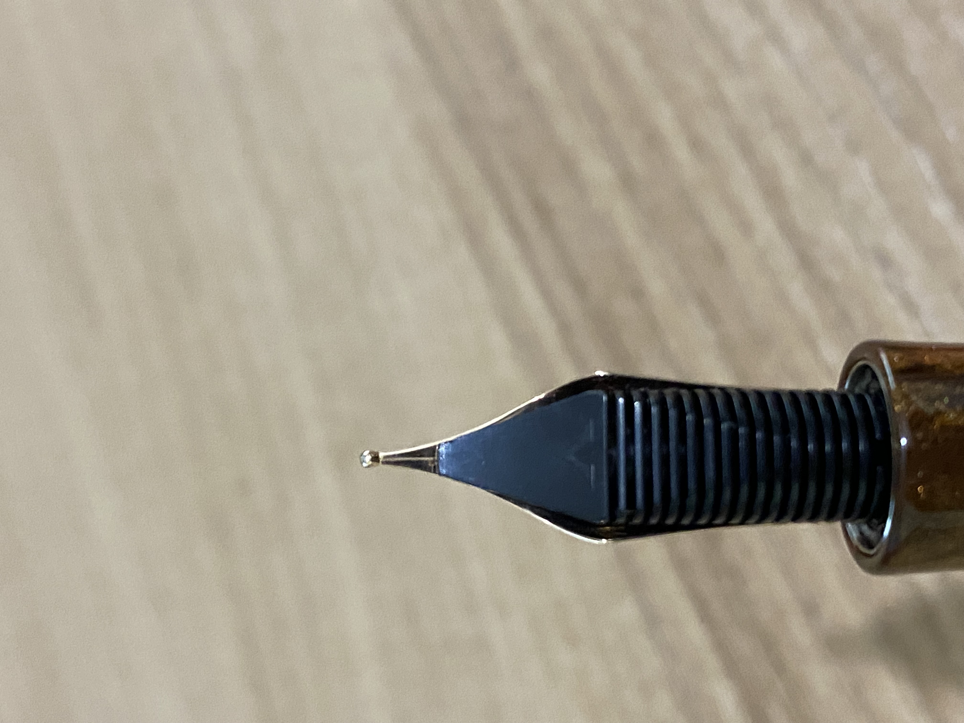 in questa discussione, il mio intervento non puo' che coincidere con quanto gia' scritto, quindi consideralo un "+1". come mostrano le foto di mastrogigino (incontrovertibili e fattuali), tolti pennini speciali (i kugel che citi inizialmente; erano pennini volti ad imitare il comportamento delle penne a sfera, in tedesco, come sai, kugelschreiber), non si puo' dire che "l'iridio occidentale sia tondo". si puo' dire (e' quello che osservo) che "l'iridio occidentale e' meno allungato di quello orientale", quindi "piu' tondo". visti da sotto, i pennini occidentali sono triangoli (isosceli) arrotondati con punta meno acuta (ovvero, a pari base, con altezza inferiore) rispetto agli orientali. ma questi sono fatti, una volta rilevati non possono condurre ad un dibattito, solo ad una maggioranza bulgara