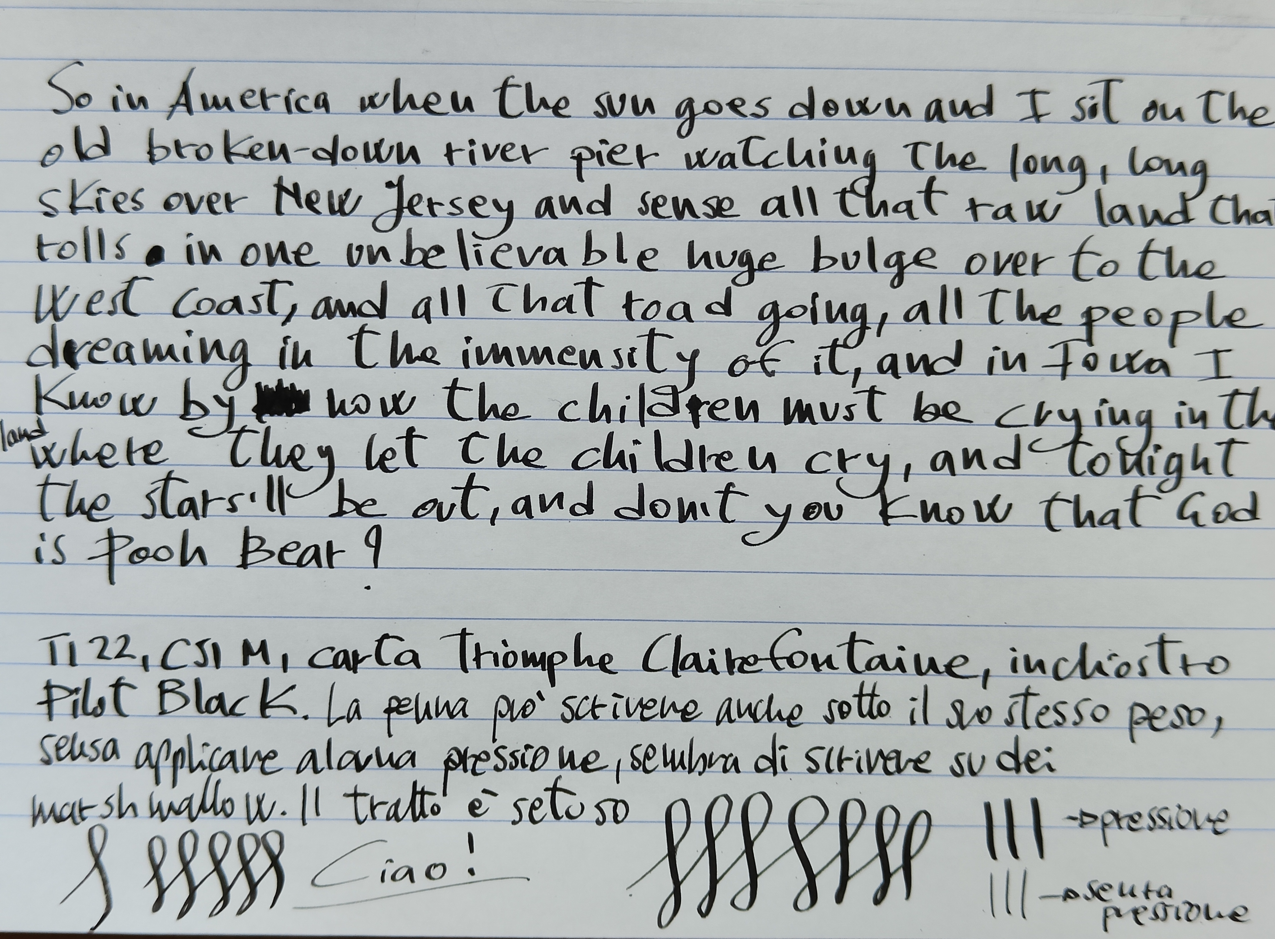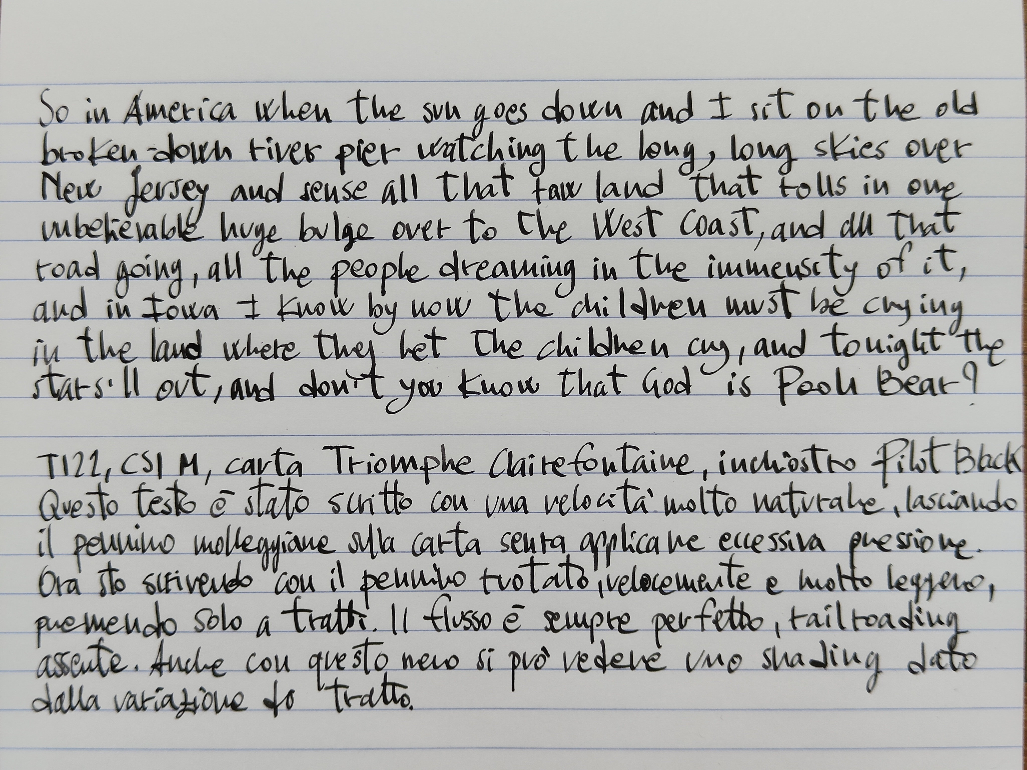 Le prove di scrittura del pennino CSI M con la lamina modificata sono due: in una ho voluto far vedere come il pennino possa scrivere usandolo al massimo della flessibilità, nell'altra è più godibile la variazione di tratto.