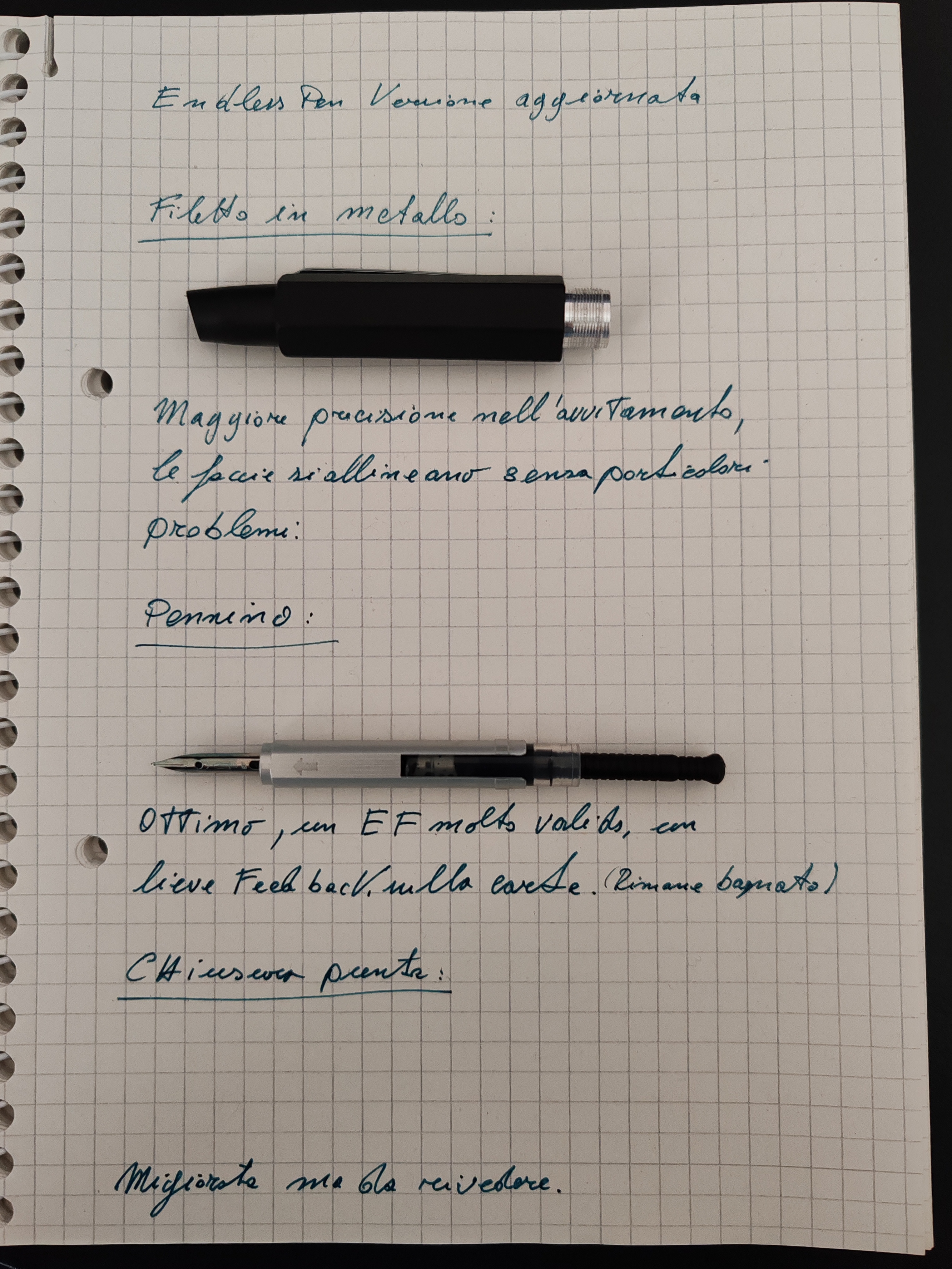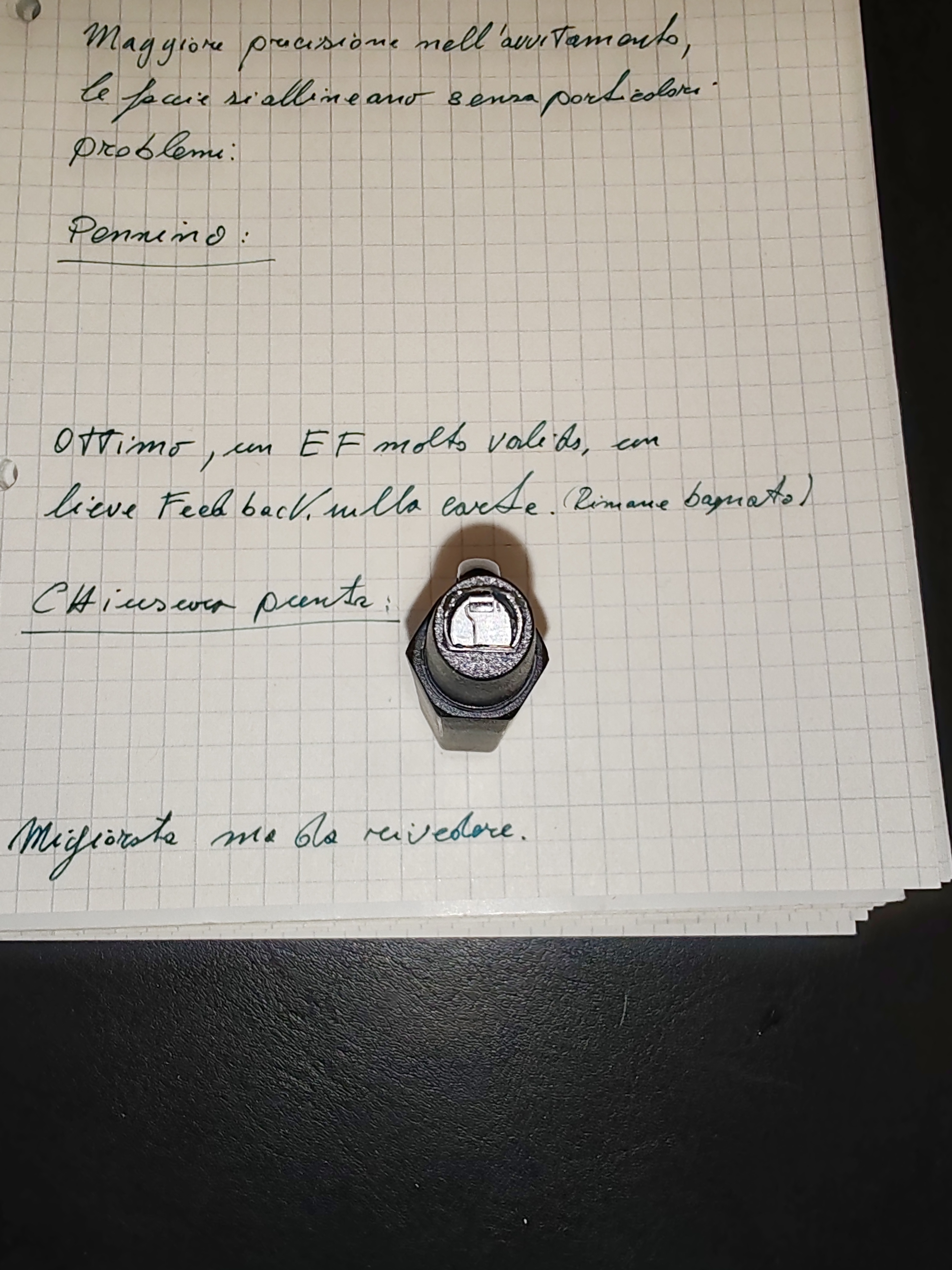 Dopo qualche mese è arrivata la penna sostitutiva, questa con pennino EF, in allegato un paio di foto con relative osservazioni.