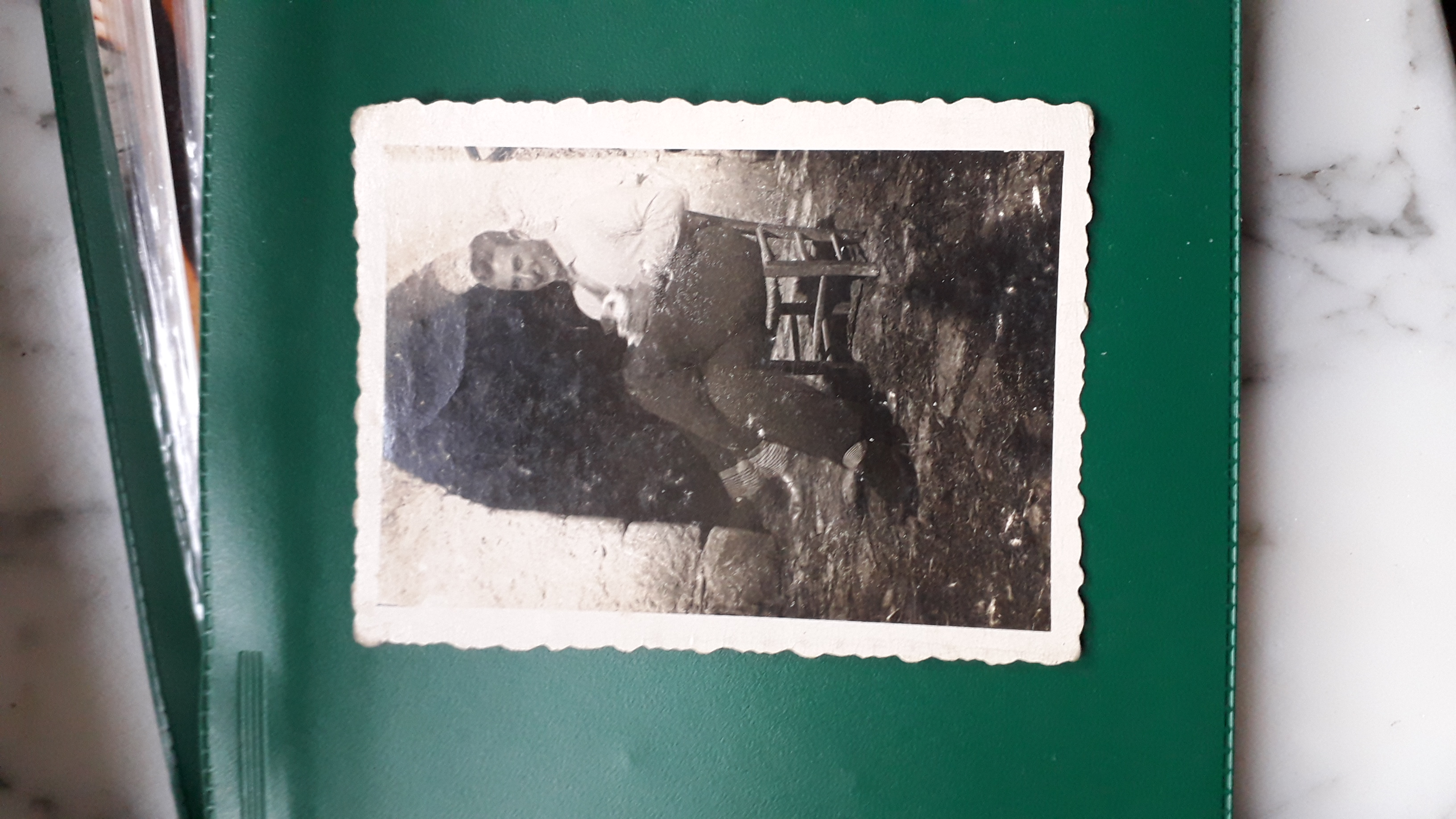 Ho trovato in archivio, questa vecchia foto di mio padre che tiene in braccio un cagnolino.