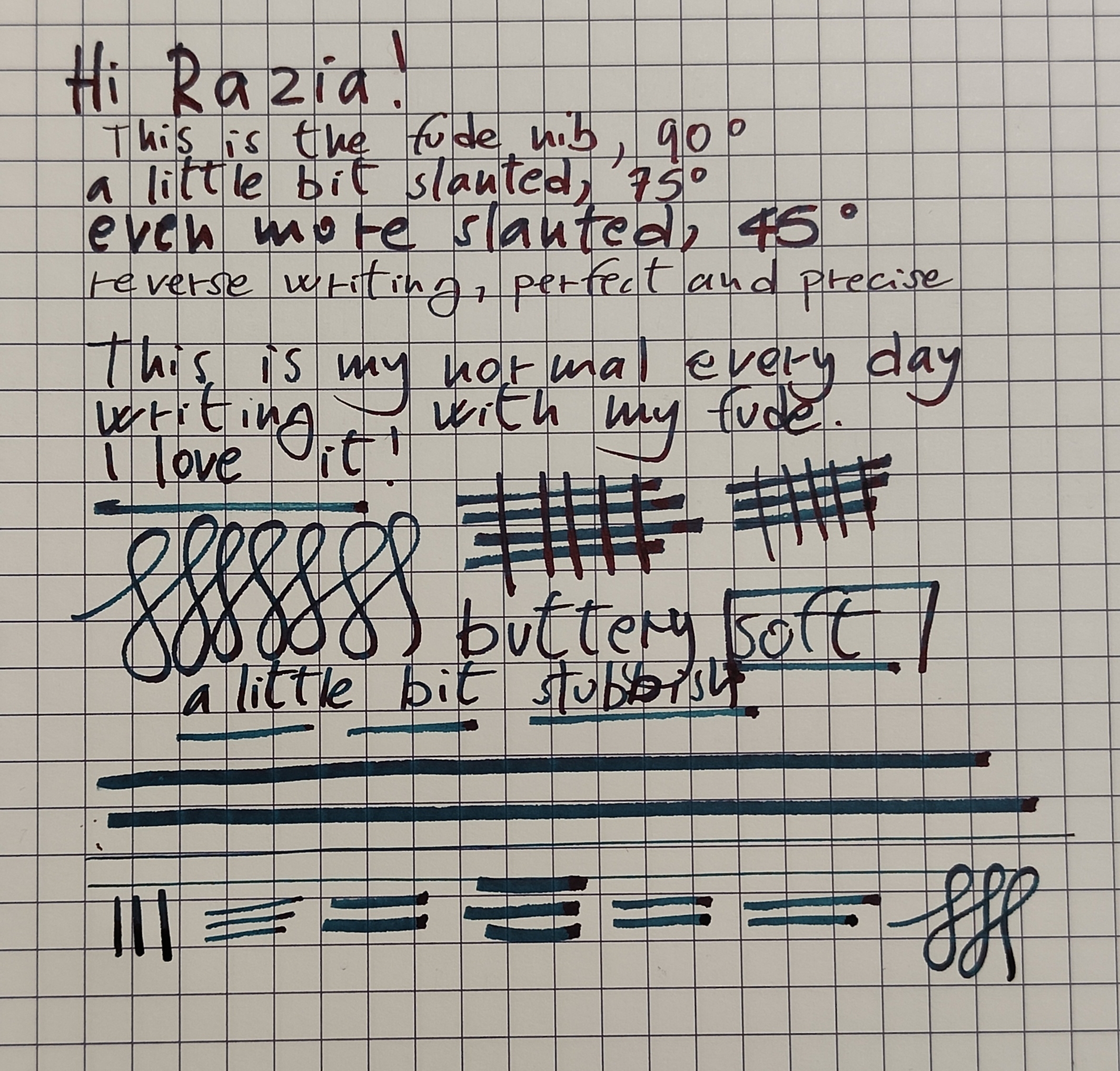 A volere salire di prezzo (senza arrivare ai €700/800 del Sailor Fude in oro), il Fude di Leonardo è imbattibile, decisamente più performante del Fude della Sailor Profit come piacevolezza di scrittura e tratto "stubbish" ad una certa inclinazione.