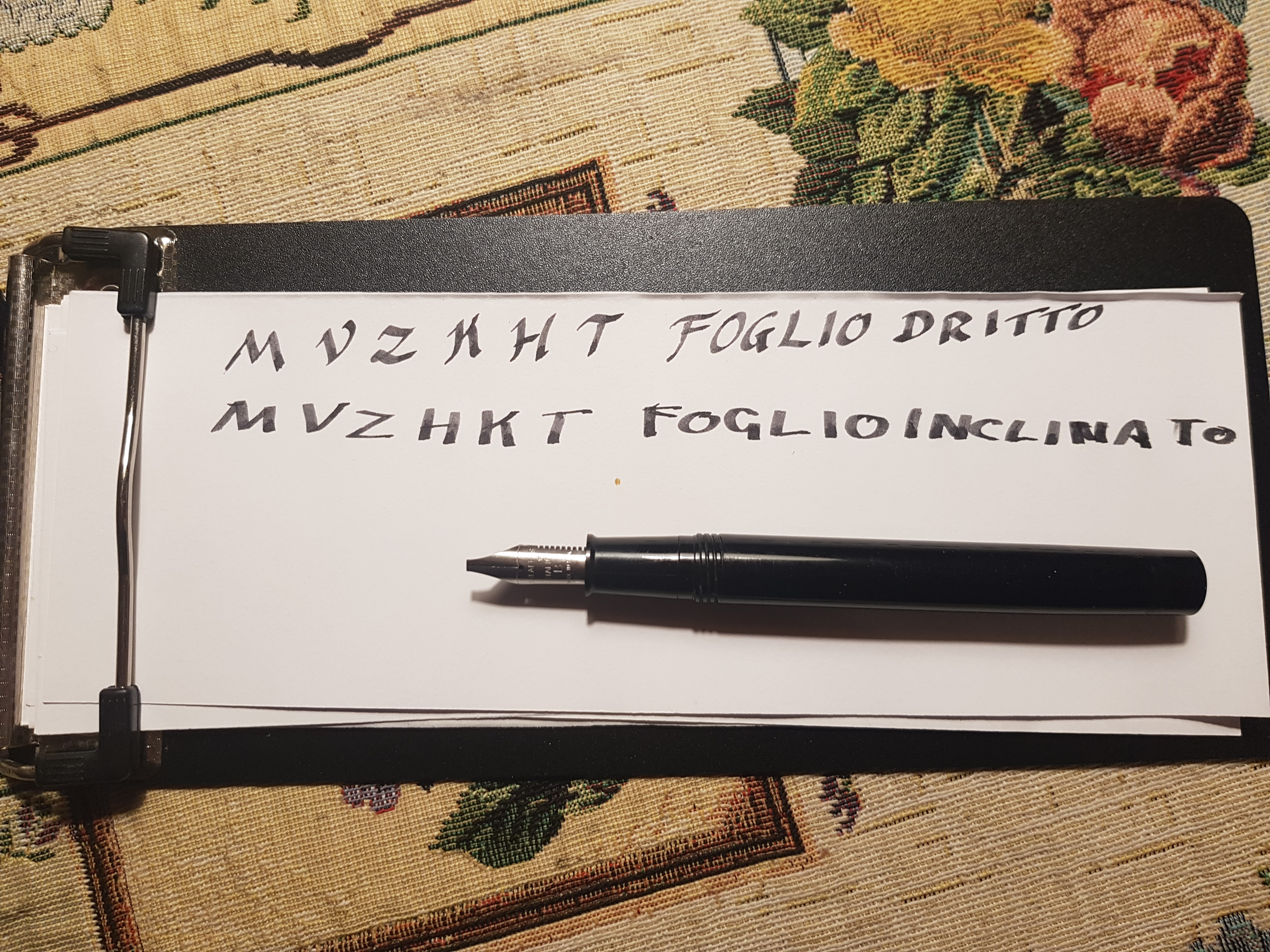 - Pennino parallelo al foglio - Nel senso che tutta l'ampiezza del pennino deve toccare contemporaneamente il foglio altrimenti il tratto risulterà da uno dei lati frastagliato e/o incompleto.