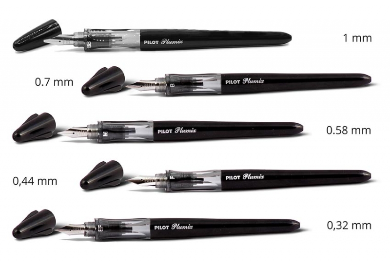 Per quanto riguarda le Plumix / Pluminix, il pennino BB corrisponde a un italico da 1,0mm ed è il più grosso (secondo me è anche un pochino di più, ma magari dipende dall’inchiostro).