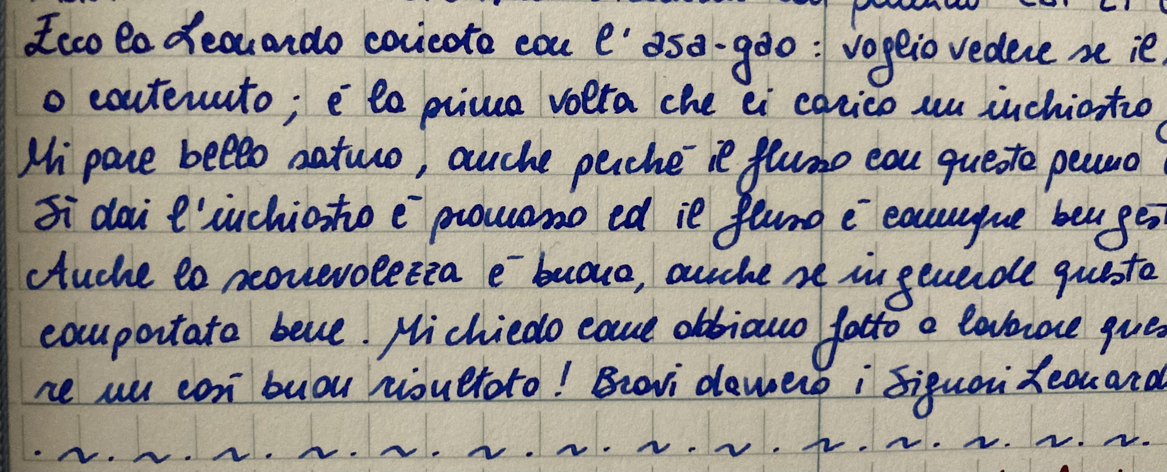 I pennini da cui parte Leonardo per fare i grinding non sono spilli come ad esempio i Sailor, l'iridio da cui parte è più corposo, quindi il CSI ha senso non tanto per ottenere la variazione che avresti su un b, ma perché la lavorazione della sfera di iridio in una semisfera (non importa quanto gli angoli siano poi smussati) ha come risultato finale un tratto meno "impastato" (passami il termine) che con il pennino tondo. Io ho osservato con il lentino il mio EF Sailor, l' iridio non è sferico ma lavorato. Questo fa sì che anche quel capello abbia una, seppur minima, variazione. Ecco, immagina il CSI EF, sebbene ottenuto da maggiore quantità di iridio, come un pennino con la sfera smussata , taglio che poi si riflette nel tratto alla maniera del Sailor EF.