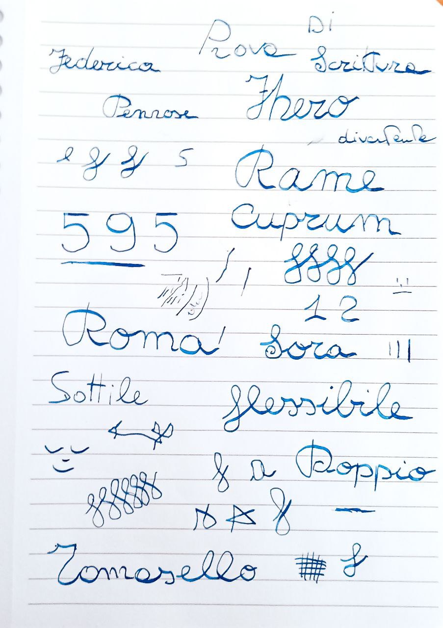 Non avendo mai usato un pennino elastico, cosa di cui sembra che questa penna sia dotata, ho passato il pomeriggio a "spingere" un po': abbiate pietà di me, non so scrivere neanche normalmente, figuriamoci in modalità "calligrafia".