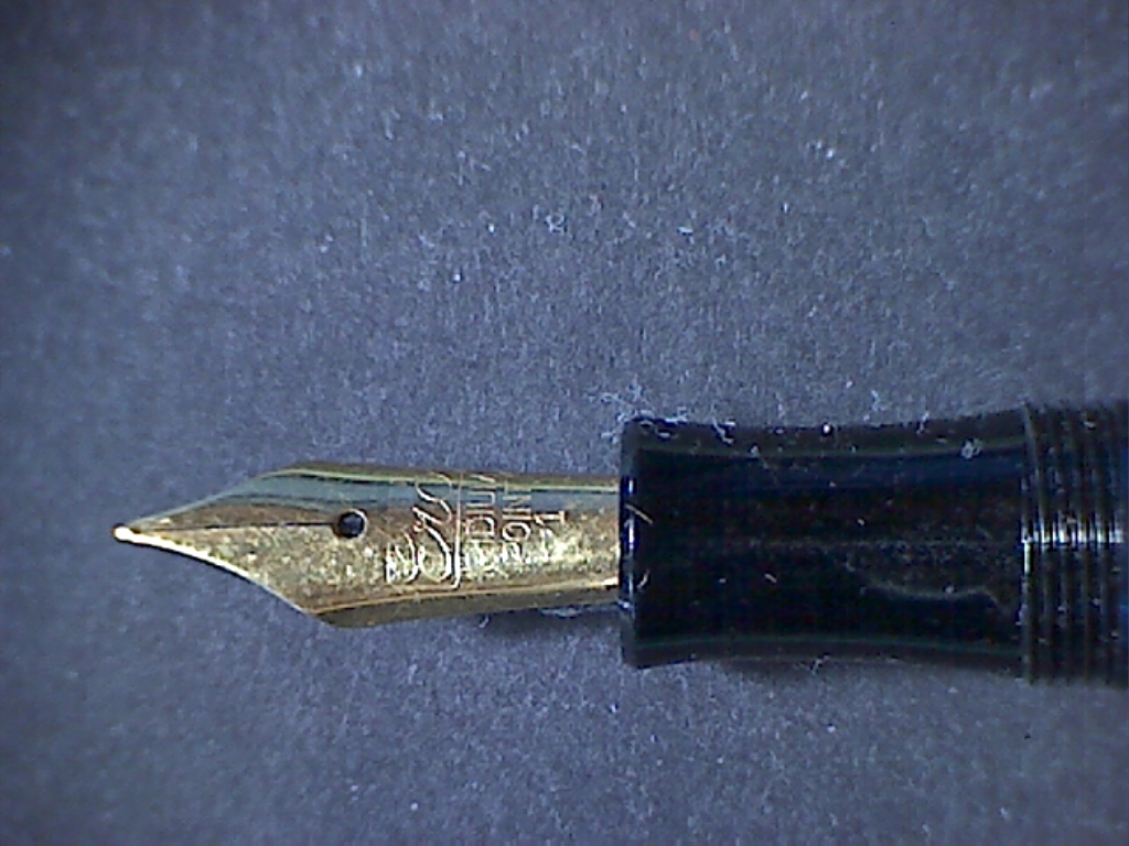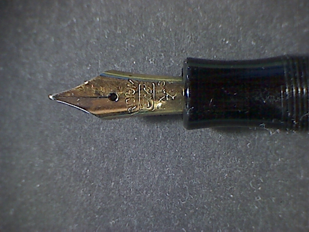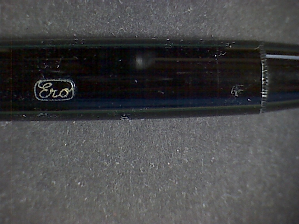 Il marchio mi affascina da anni, soprattutto per le loro scolastiche (Mayor, ecc.) inarrestabili ed economiche (una di queste potrebbe per davvero essere una ottima prima penna seria). Ne ho regalate diverse ad amici che volevano avvicinarsi alla stilografica. Me ne restano un paio con le relative scatoline in cartone (una in bianco/rosso e l'altra in giallo/rosso), due modelli differenti con differenti pennini (uno bicolore e l'altro monocolore con scritta Iridium Point). La terza che posseggo è un modello simile ad uno di quelli presentati da Esme (stessa finestrella azzurrina, pistone in materiale plastico) ma con il corpo in (finta?) celluloide striata marrone tipo Pelikan (non vedo la giuntura del foglio ma potrebbe essere stata fata ad arte). Il pennino è originale in oro 14K marcato ERO nella classica finestrella e poi 14K-585 e sotto il n.4; conduttore in ebanite di foggia diversa da quello delle sorelline. Sul fusto in prossimità del pomello del pistone la scritta (pochissimo leggibile in quanto punzonata sulla parte a strisce) EF.