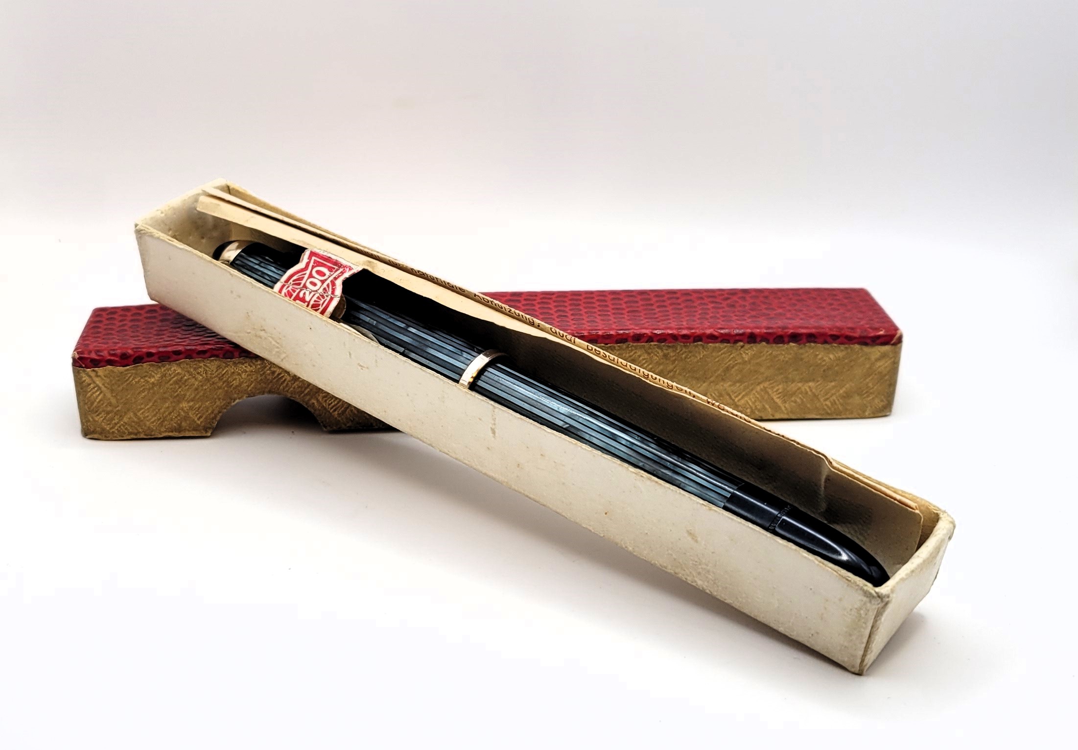 Forse ai tempi montavano ciò che era disponibile sul mercato ed essendo stilografiche "economiche" acquistare i pennini altrove contribuiva a tenere bassi i prezzi. Se fosse così magari potrebbero esserci dei legami ulteriori con altre aziende. Sul corpo è riportato: Made in Germany Purtroppo al momento non ho la stilografica sotto mano e non posso controllare, mi sembra di ricordare che lo stantuffo sia in plastica e non in sughero, stasera controllerò.