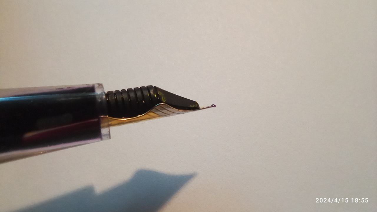 Il problema principale dei pennini stilografici è che son fatti per durare grazie alla punta in iridio - che, inevitabilmente, arrotonda gli angoli - e grazie anche a una lamina di metallo più spessa e resistente - che, invece, limita l'apertura dei rebbi nella maggior parte dei casi a quei 1,2-1,5-1,8mm che si raggiungono applicando una forza maggiore.