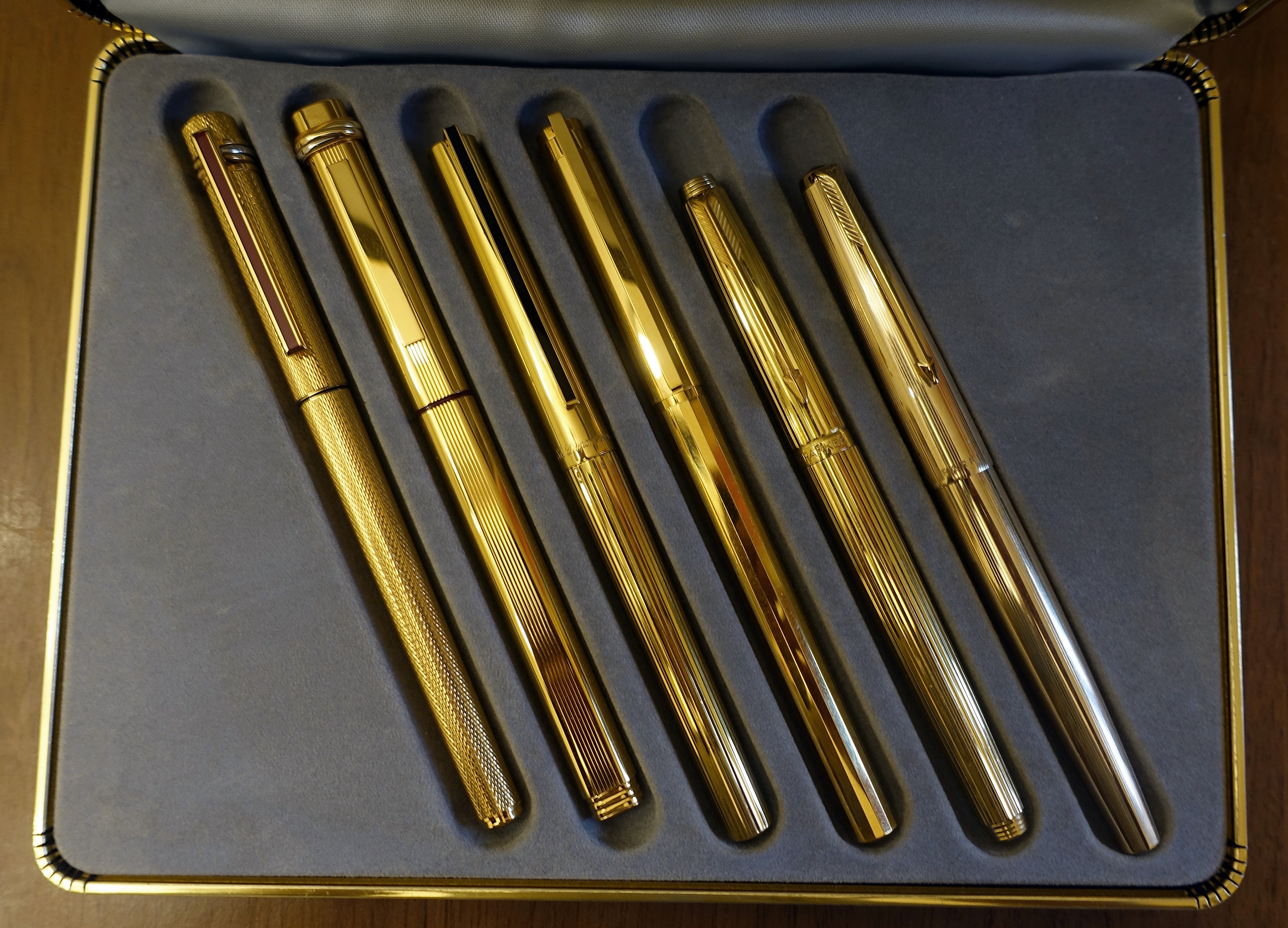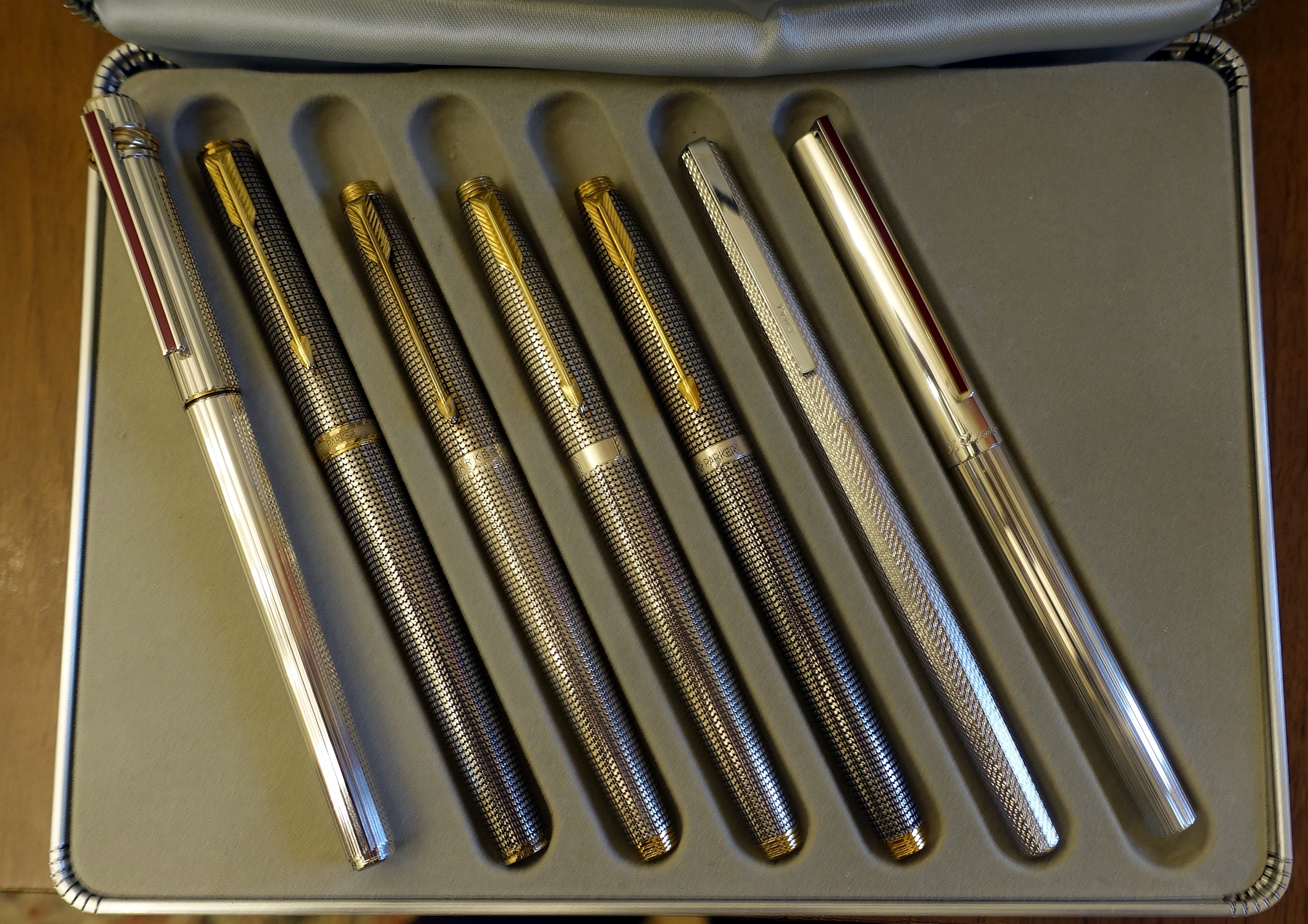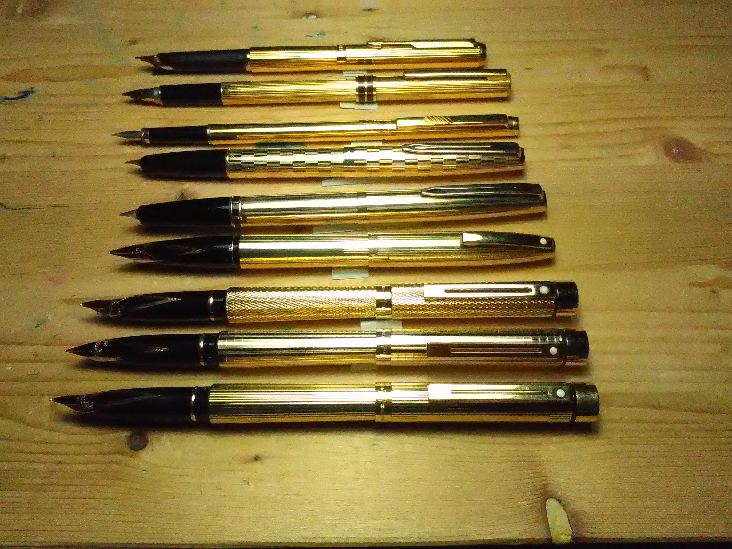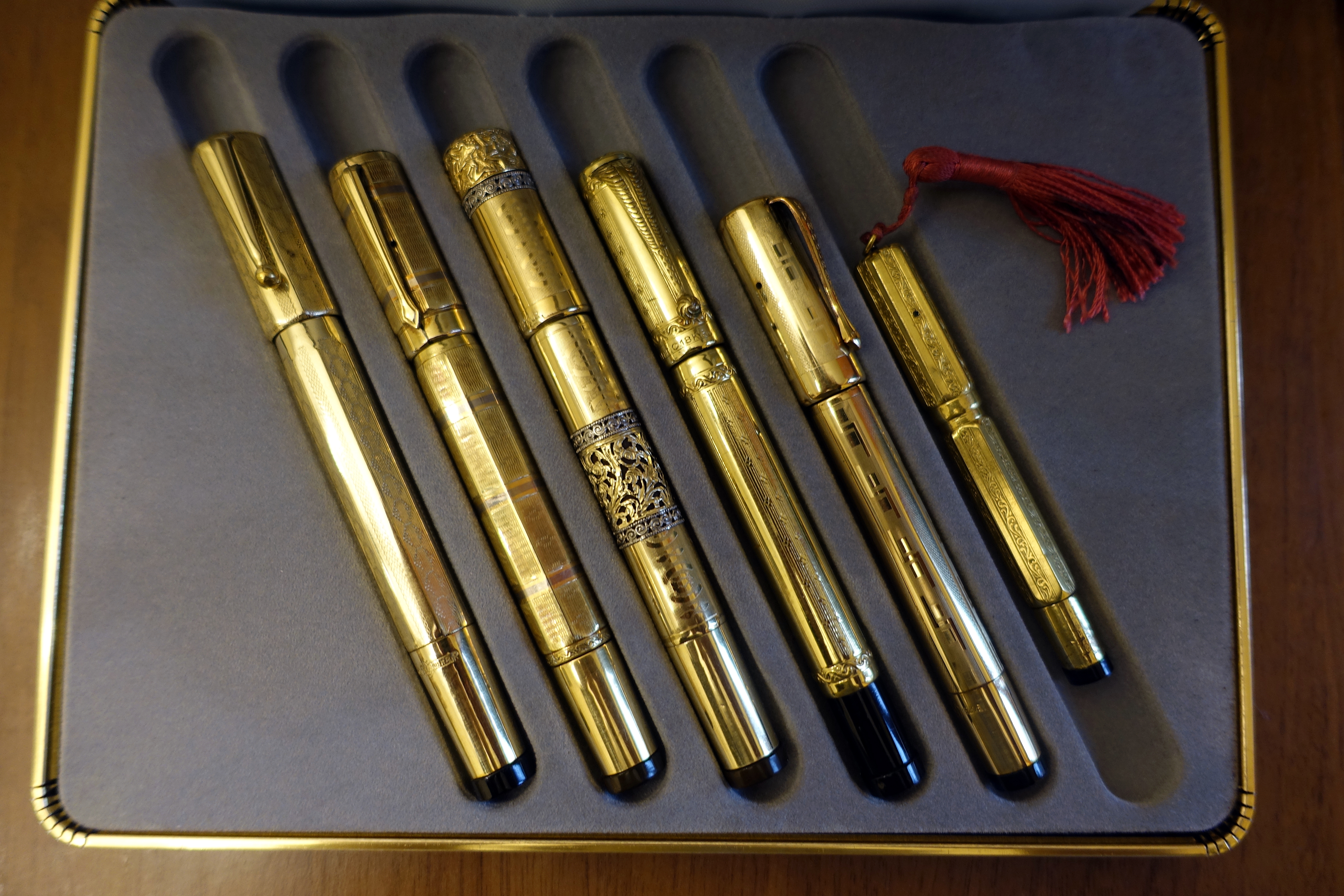 dall'alto: Parker, Aurora, Montegrappa, Aurora, Aurora, quattro Sheaffer