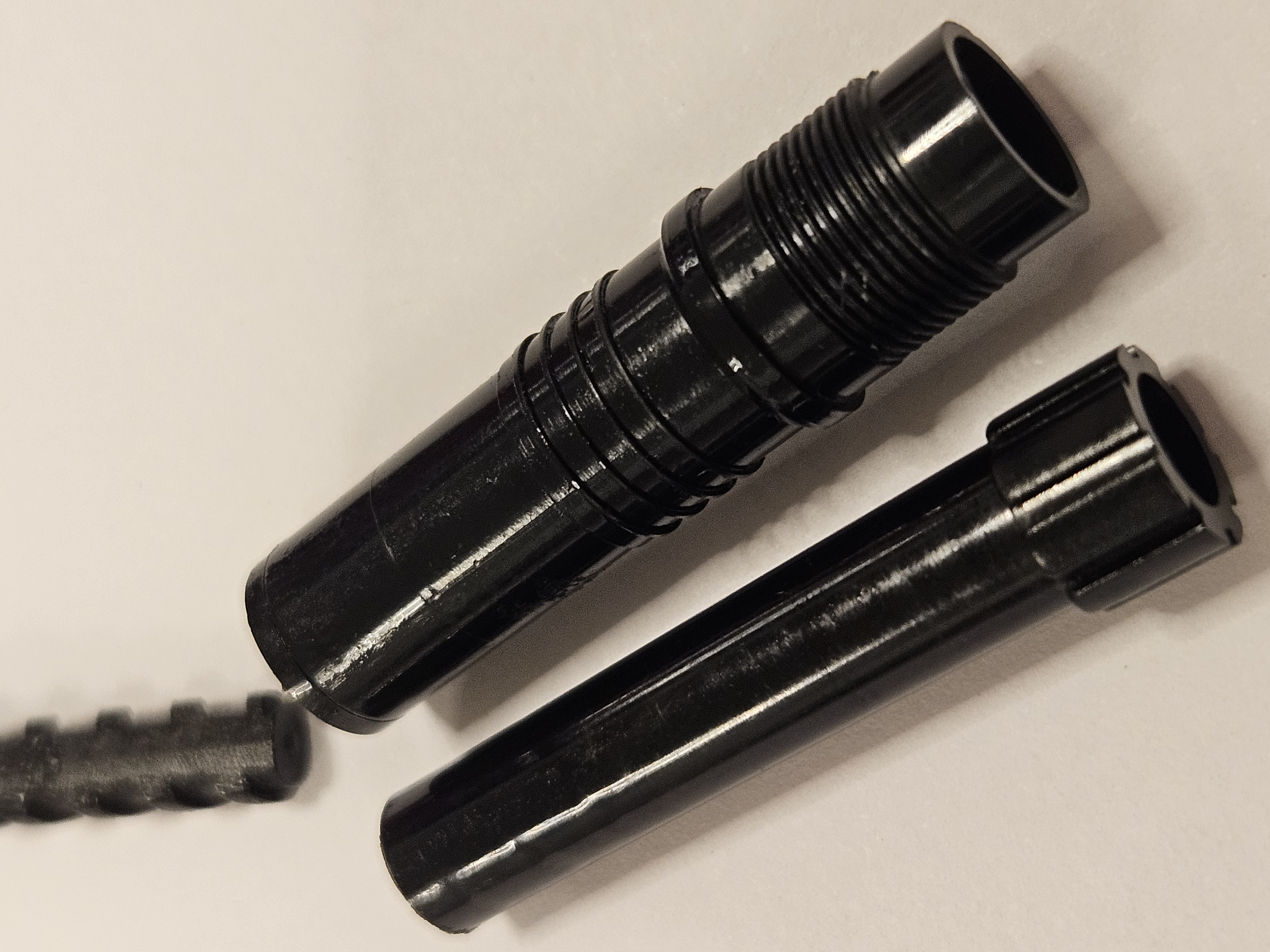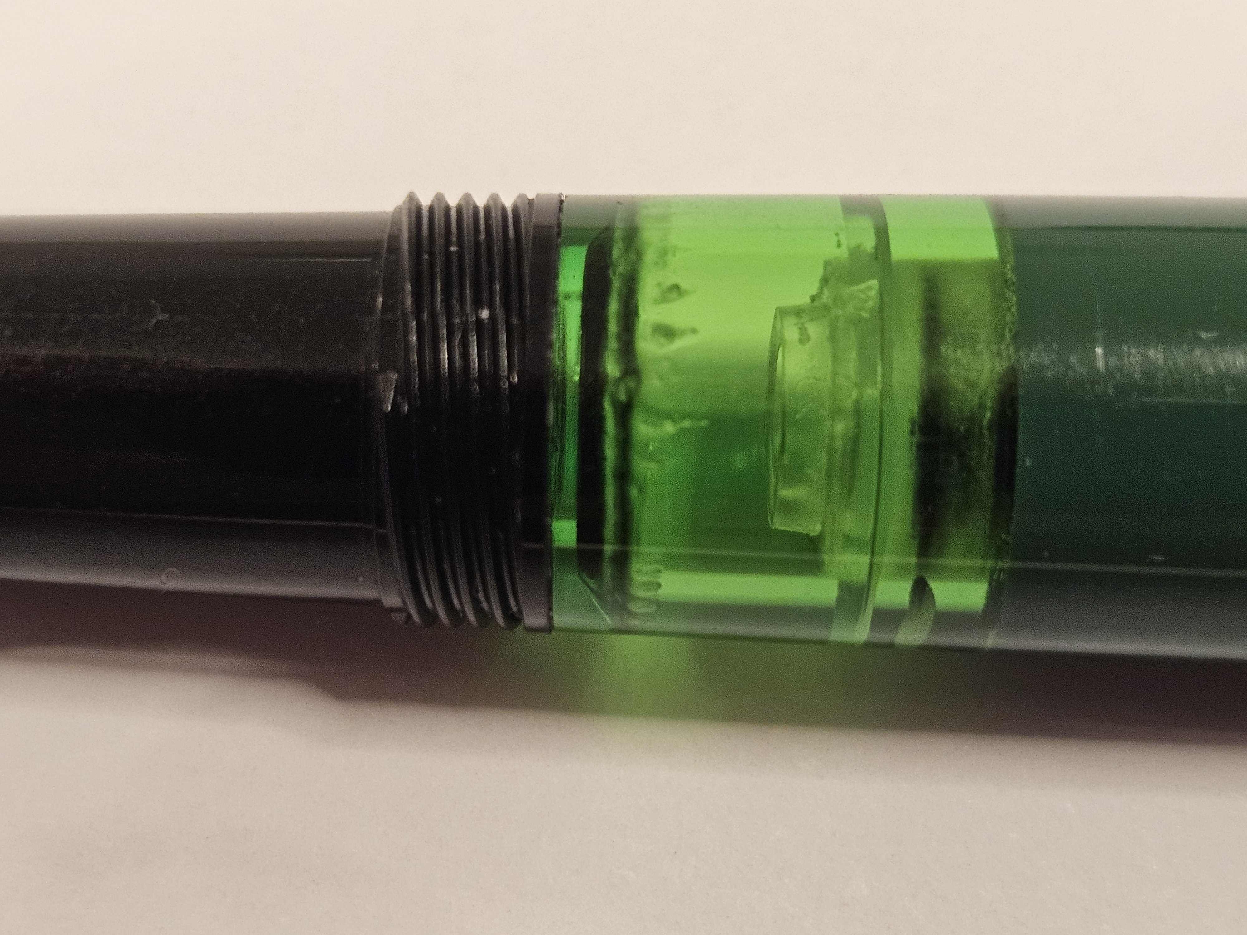 1) monta il pistone senza infilarlo nella penna. Ovvero a) la parte dentata del cilindro cavo va ad incastro nel fondello della penna; b) avvita parzialmente il fondello sull’interfaccia tra barrel e pistone: c) infila la vite del pistone dall’altra parte e comincia a tirarla su finendo di avvitare il fondello sull’interfaccia.