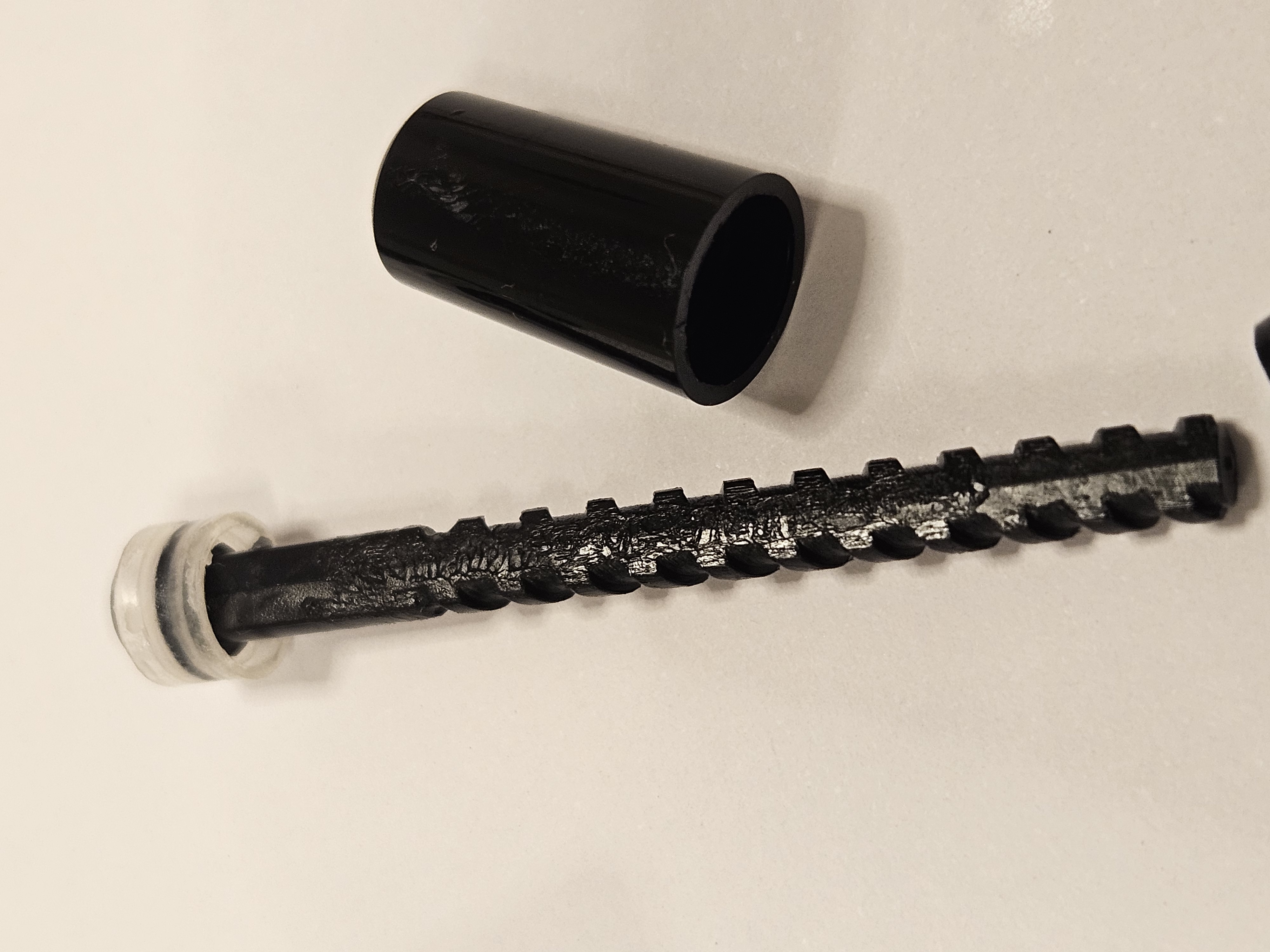 Dopo questa operazione il pistone dovrebbe essere quasi completamente retratto, puoi fare più tentativi cambiando quanto avviti il fondello sull’interfaccia prima di infilare la vite. Fermati quando sei soddisfatto della posizione del pistone (tra guarnizione ed interfaccia deve restare qualche mm).