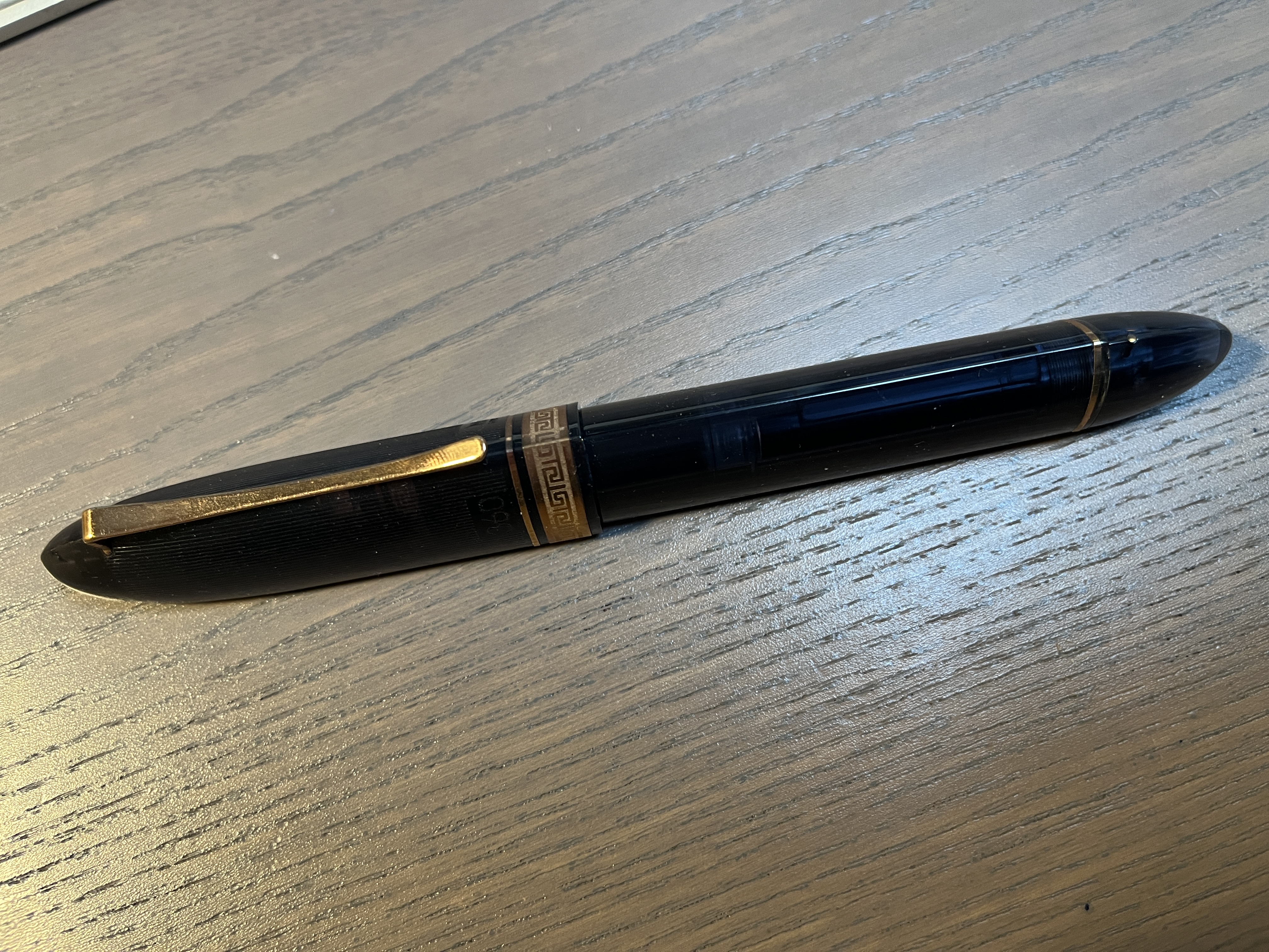 Devo ammettere, molto a malincuore, che effettivamente la qualità dell’originale è piuttosto bassa. Io ho trovato 2 anni fa una vera NOS, prima edizione a stantuffo, incredibilmente priva di difetti o deformazioni da resina vegetale. La presi perché il design per me è insuperabile e non la darei mai via, ma confermo che la sensazione di fragilità è palpabile, l’inchiostro secca velocemente e il cappuccio non chiude benissimo (da cui, immagino, il problema precedente).