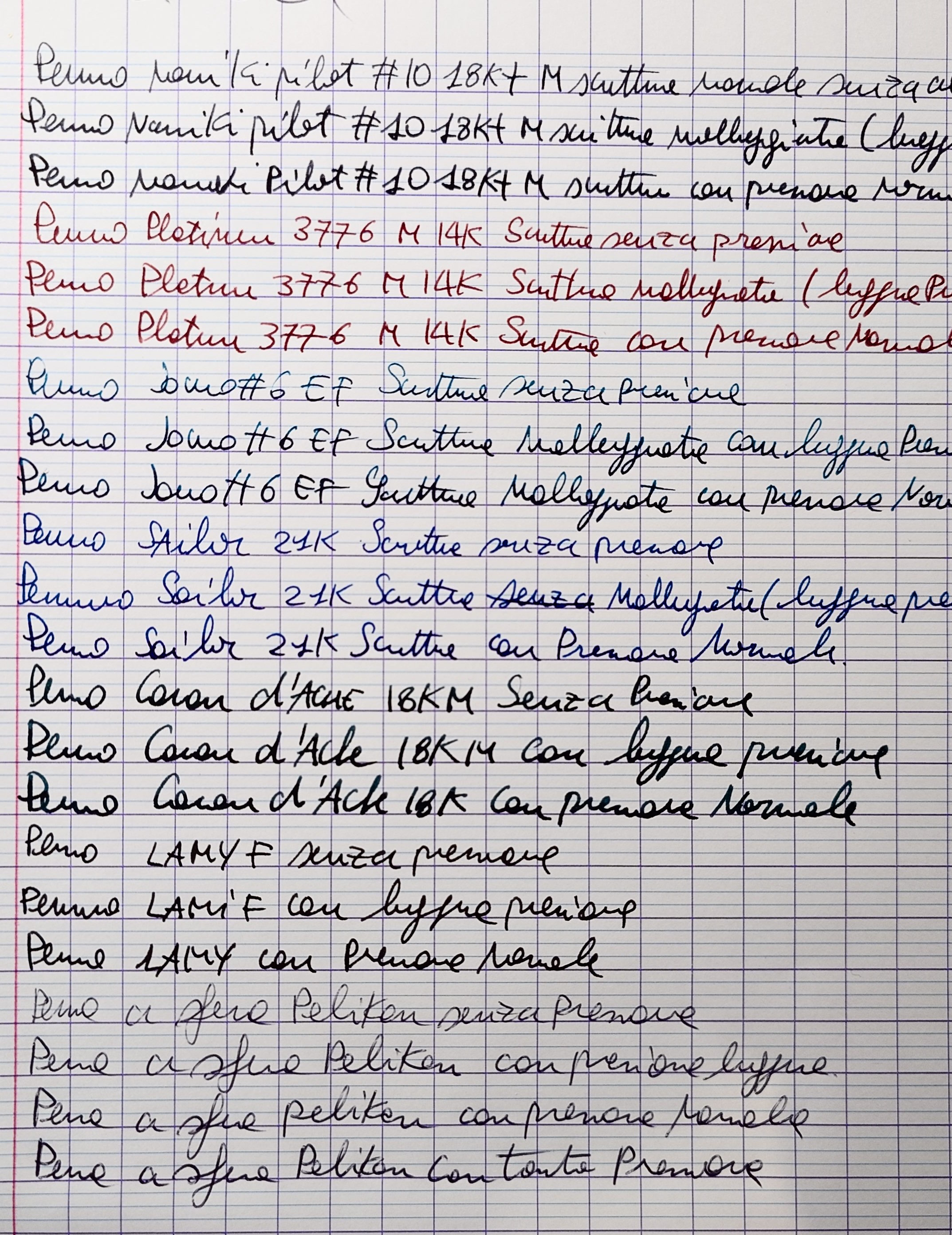 Subdola richiesta di un po' di pressione" poi, è proprio fuori discussione, ti sarà capitata una Pelikan farlocca. Le Pelikan sono tra le, non numerose, penne che scrivono appena sfiori il foglio, lasciatelo dire da uno che non preme affatto, e che usa Pelikan proprio per questo fatto.