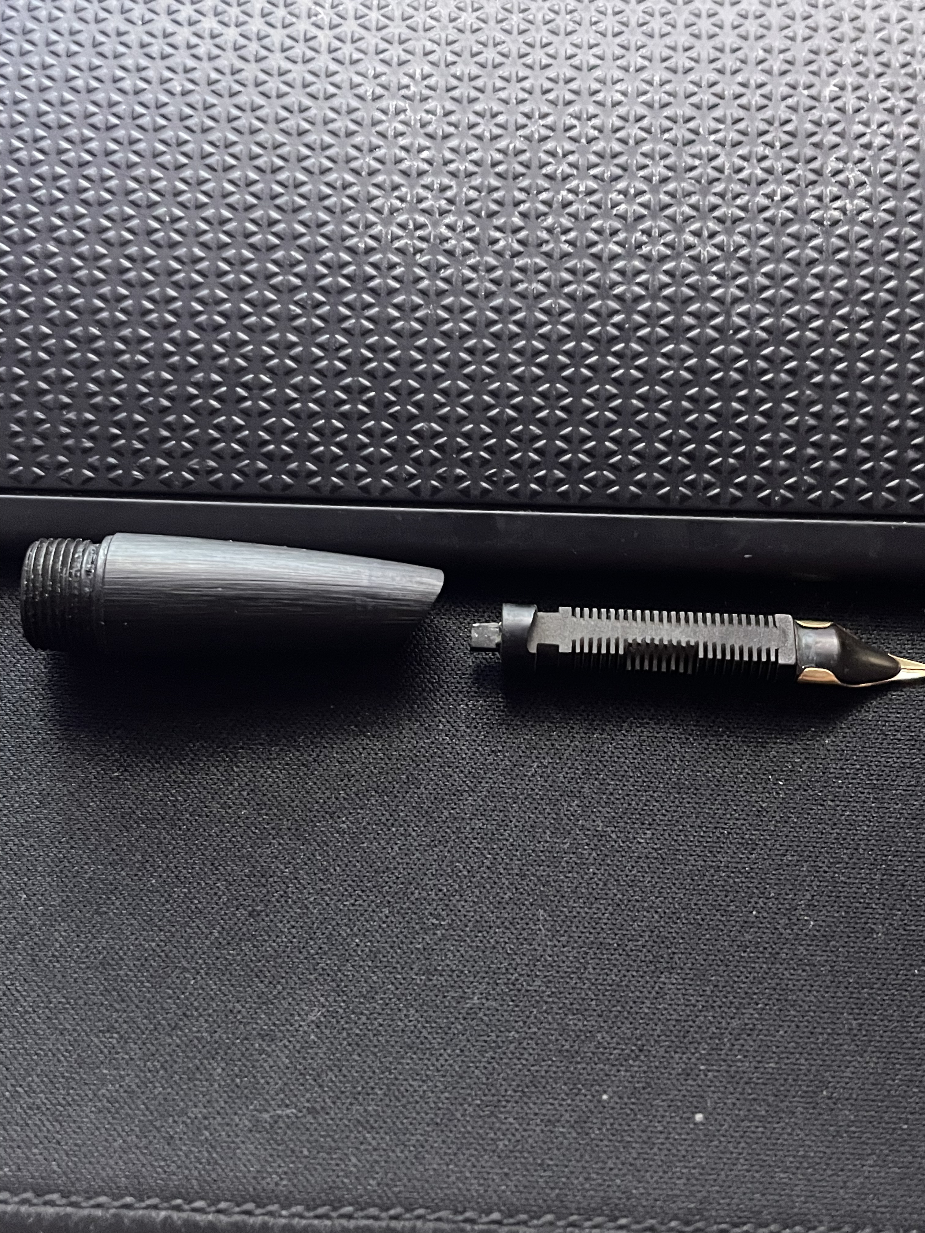 Ci è voluta un po' di violenza e di paura... ho usato un martello e una cartuccia waterman che sono un po' più lunghe come "punta", per fortuna è andata bene, ho rotto solo alcune alette del pettine dell'alimentatore che solitamente non rappresentano un grande fastidio in fase di scrittura. Mi ricordavo però che il pennino fosse più facile da levare dall'alimentatore, lui è la prossima sfida... secondo voi rischio a usare un po' di WD40?