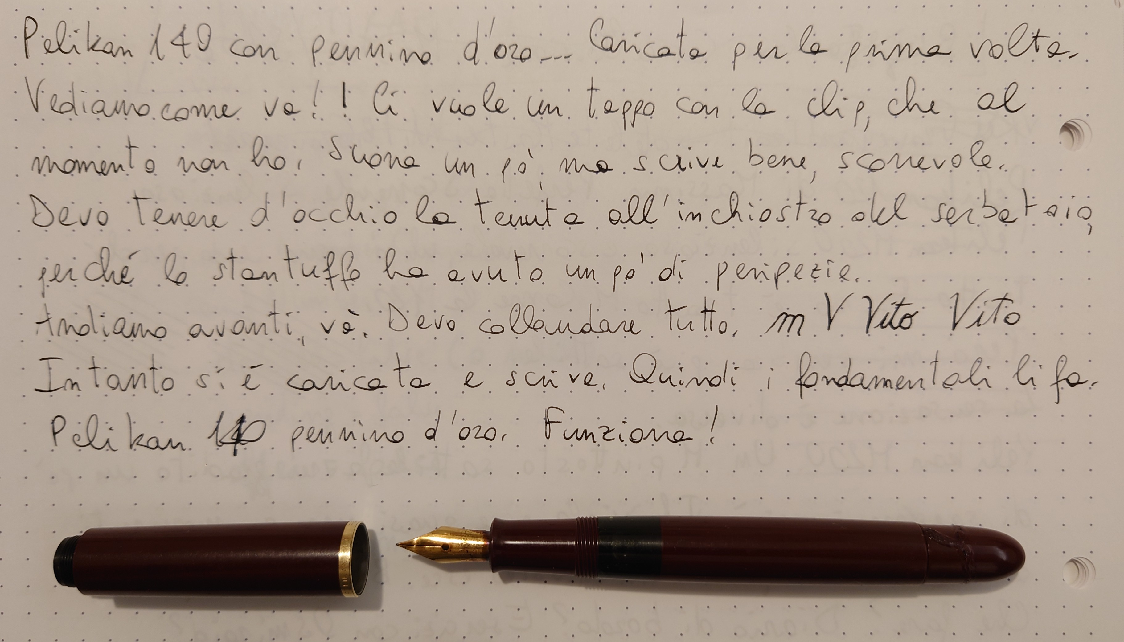 Dovrò tenere d'occhio la penna in cerca di eventuali perdite, vedremo nei prossimi giorni.