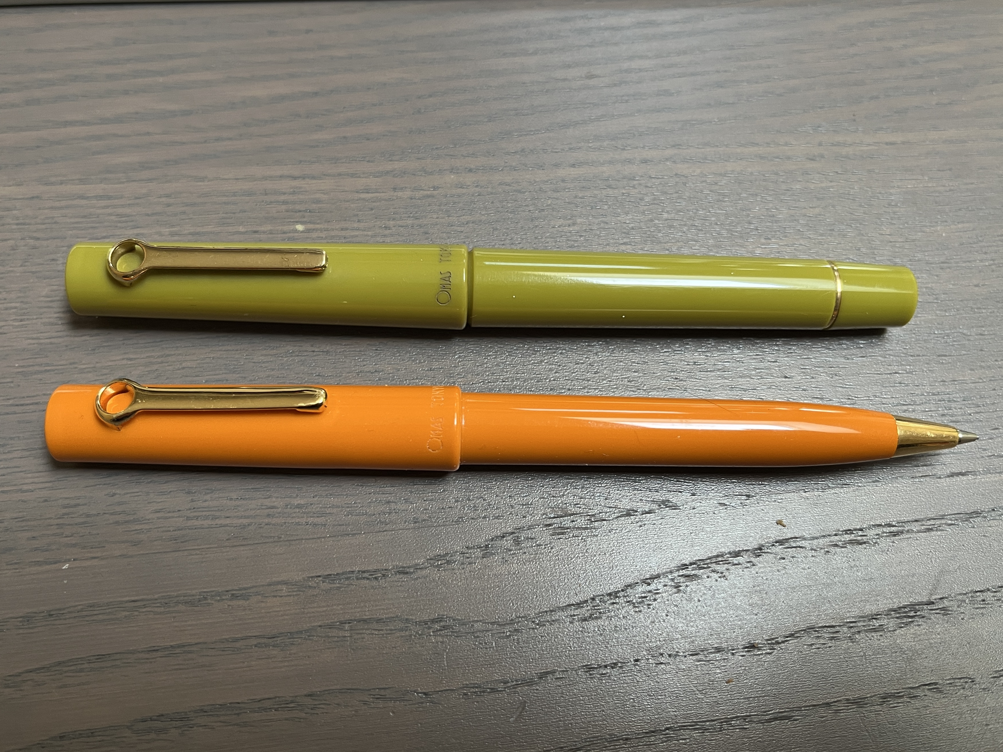 La Omas Tokyo di 30 anni fa - prima penna che mi è capitata a tiro - mantiene cappuccio e dimensioni, ma il fusto più sottile la rende molto più carina.