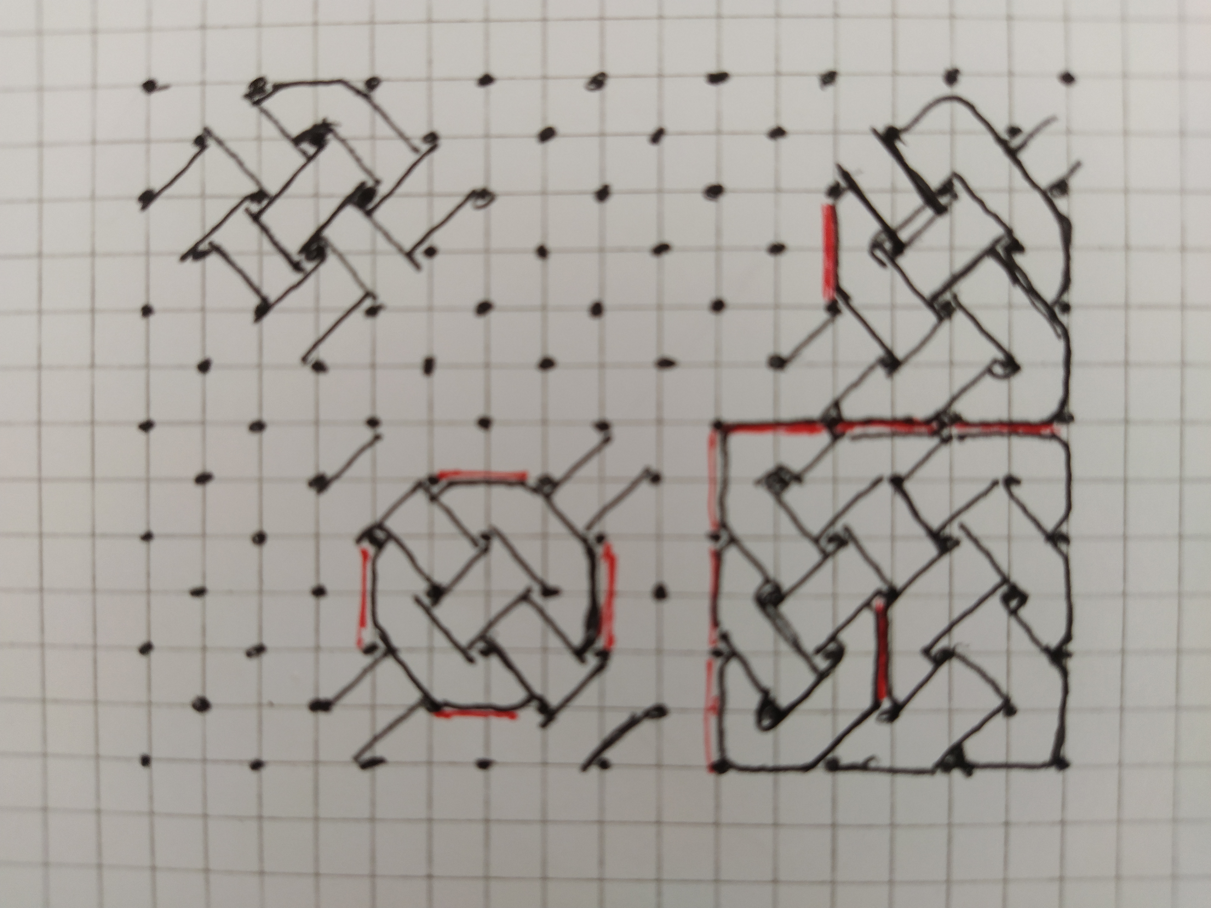 Mi sono accorto solo oggi di questo argomento. Porto un piccolissimo contributo per la costruzione di celtic knot semplici (per esempio bordature); probabilmente la maggior parte lo conosceranno già (o forse sarà descritto il altri argomenti), ma nel dubbio....