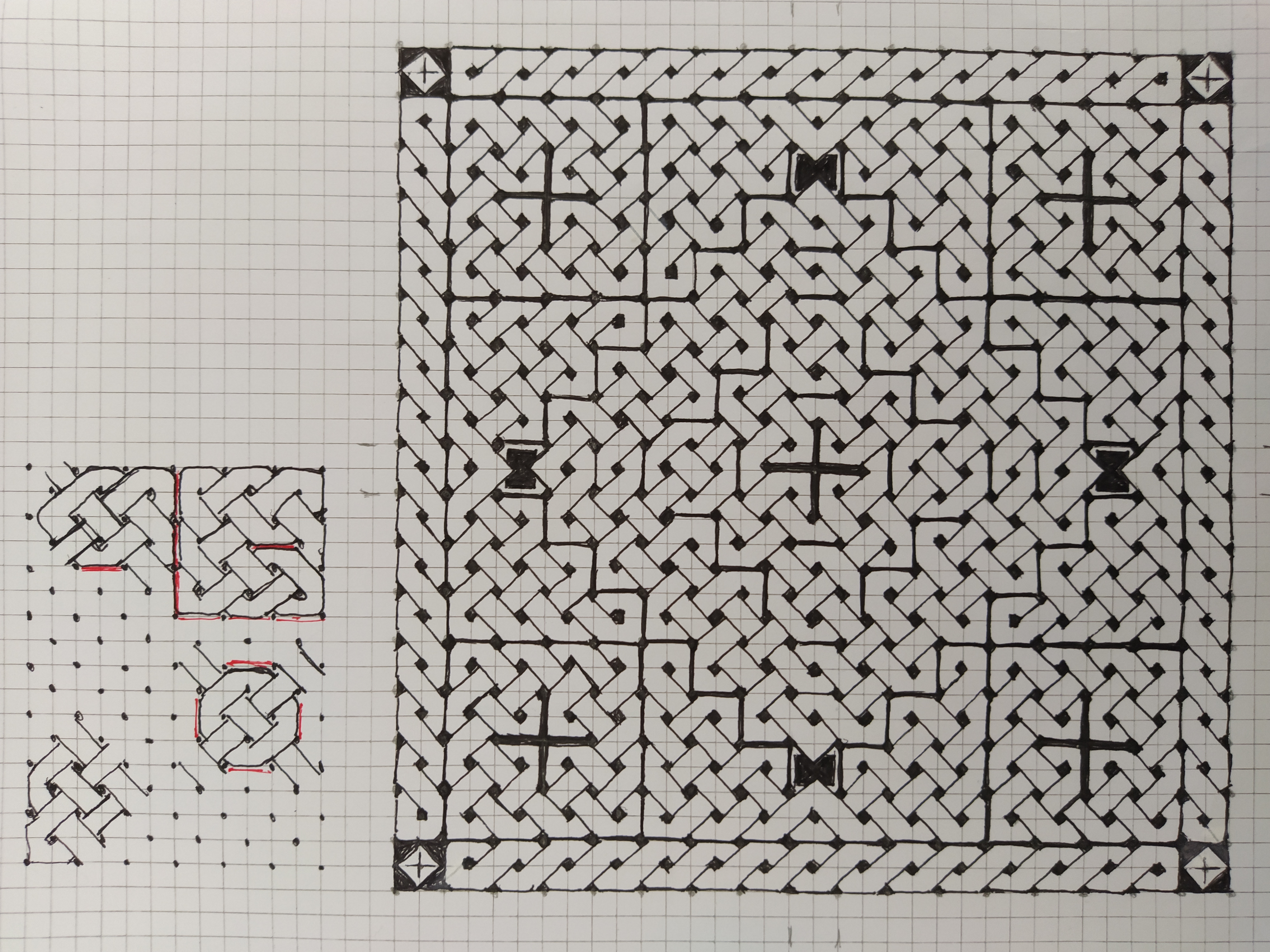 Questo schema di costruzione di celtic knot è molto semplice e usando un foglio quadrettato di base, non ha bisogno di null'altro che le proprie mani e un qualsiasi strumento di scrittura. Credo inoltre possa essere anche un passatempo antistress, si può interrompere e riprendere in qualsiasi momento senza problemi, e l'effetto finale può essere accattivante.