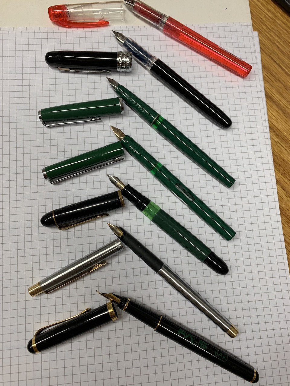 Aggiungo la mia piccola squadra di penne scolastiche che scrivono tutte molto bene , ognuna con il suo carattere.