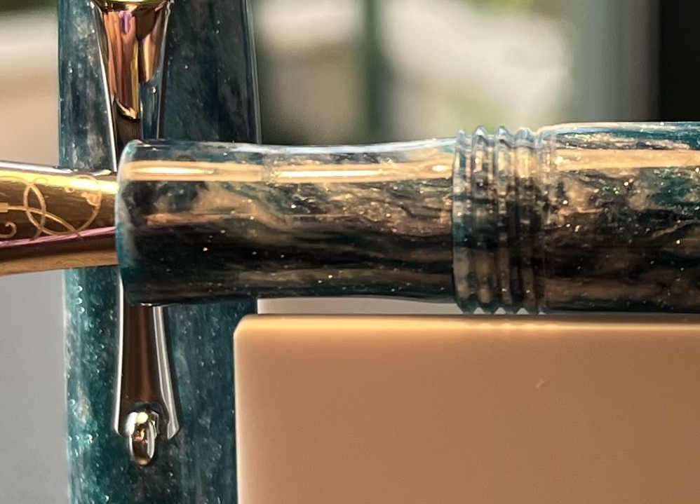 Grazie per le domande! il fondello è avvitato sul cappuccio un po' come nelle Pelikan (maschio sul "corpo principale" del cappuccio, femmina nel fondello) e presenta un incavo che funge da sede per l'anello della clip, la quale quindi si "incastra" in sede avvitando il fondello al cappuccio. Cappuccio e fondello sono torniti insieme in modo da non lasciare scalini, e solo dopo la tornitura esterna creo con una lima la "tacca" da cui esce il braccio della clip ;)