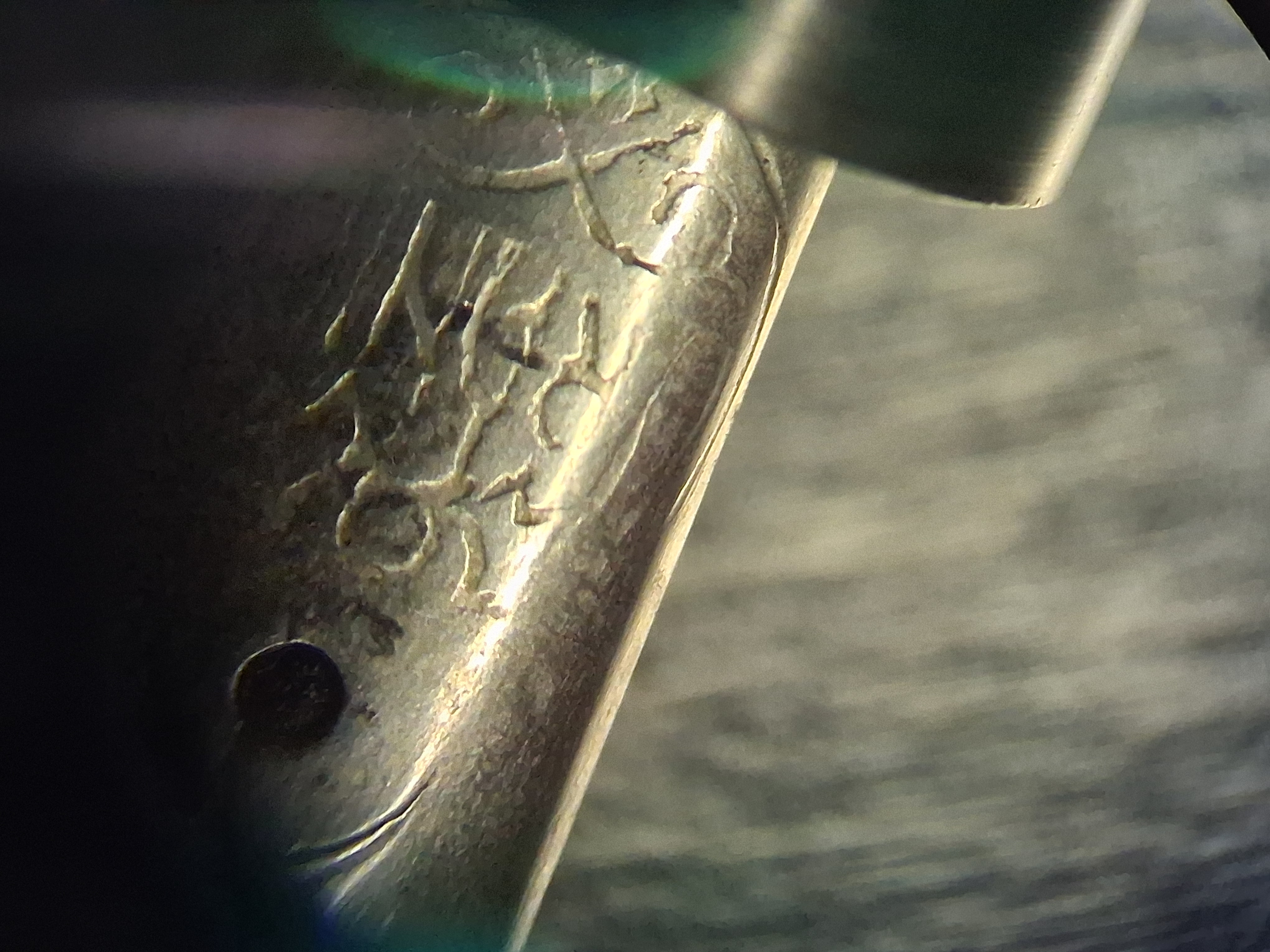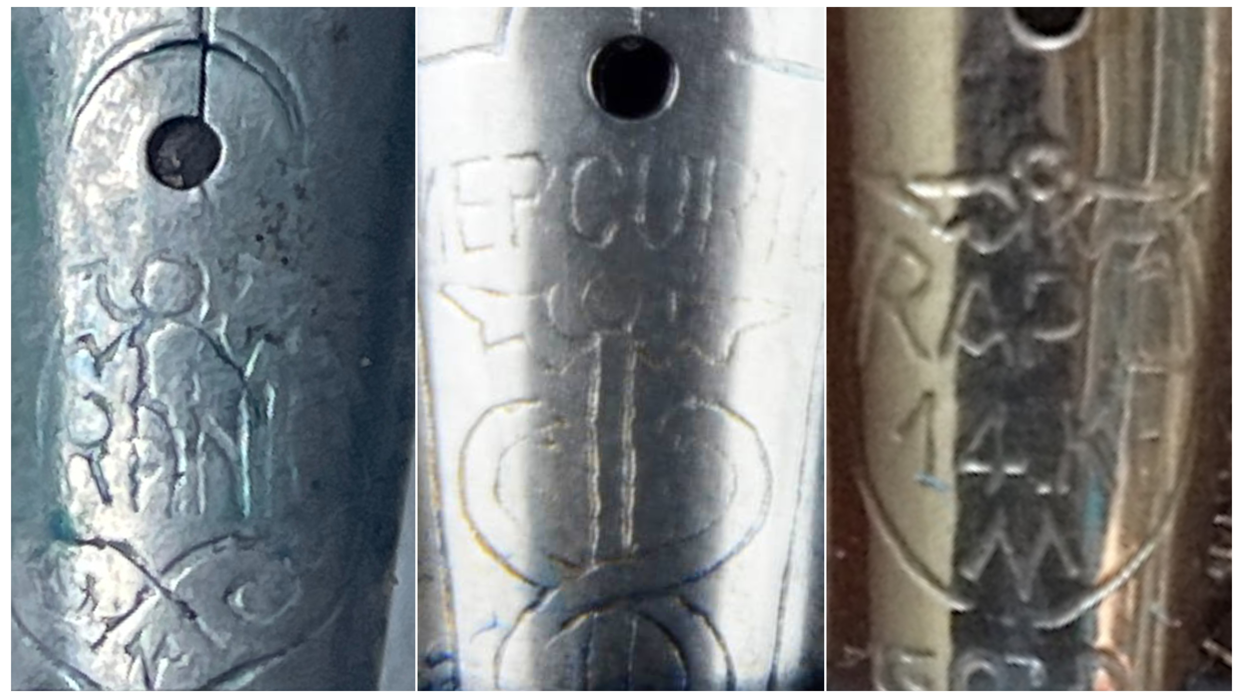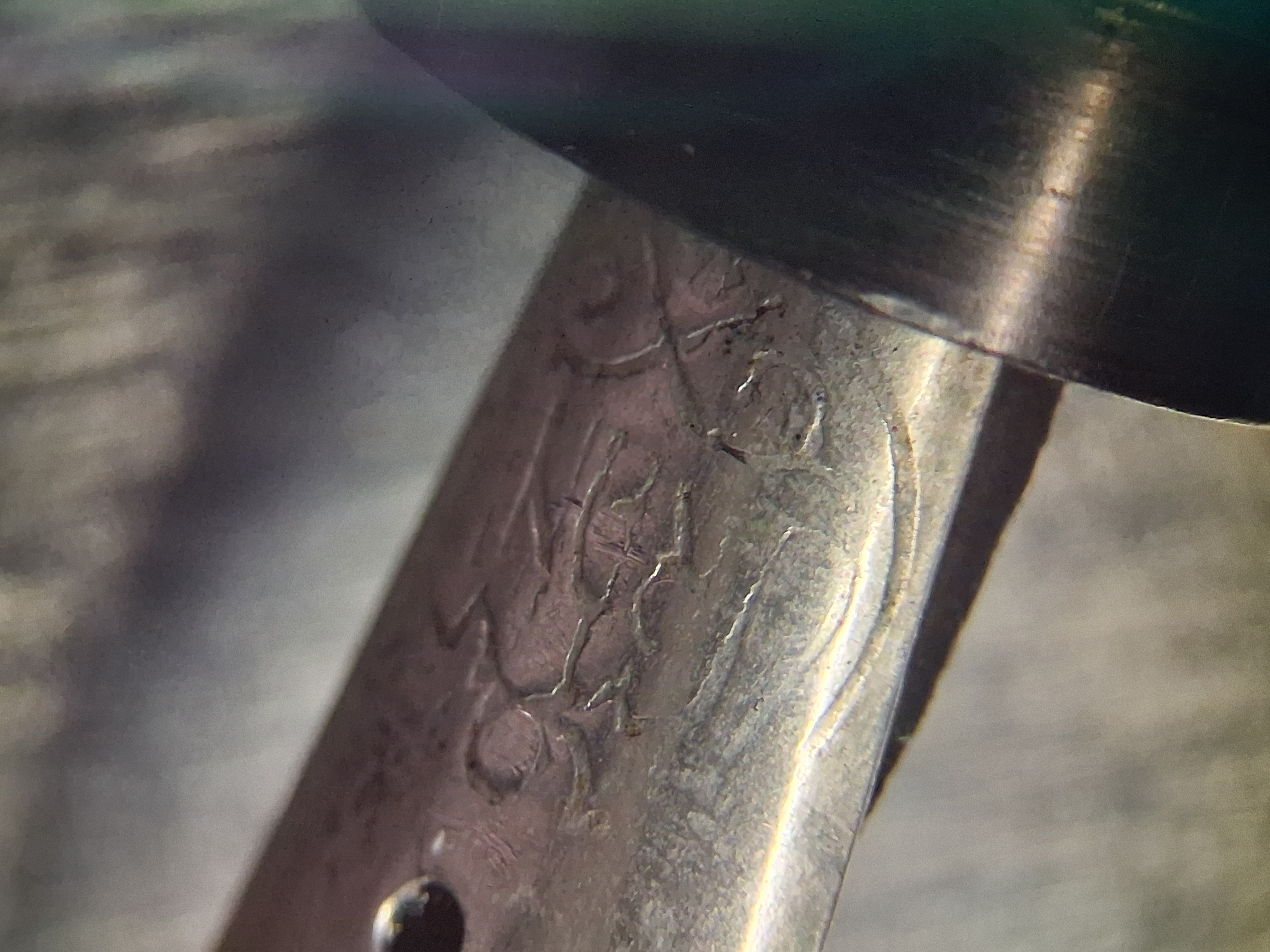 In questo pennino la punzonatura lateralmente è lacunosa, lo si vede anche nelle scritte.