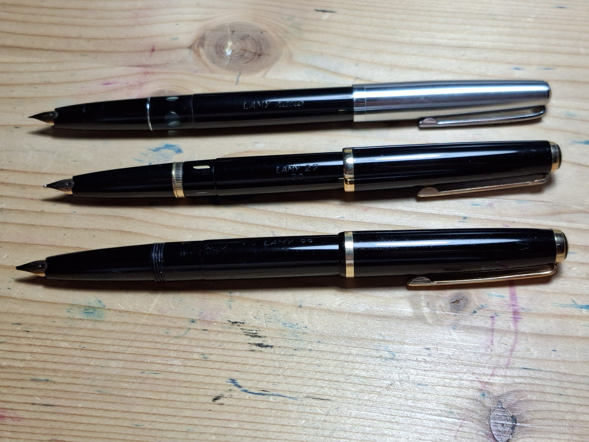 Da un po' di tempo sono alla ricerca di queste Lamy datate, scrivono tutte bene con pennini scorrevoli , nell'ordine sono: